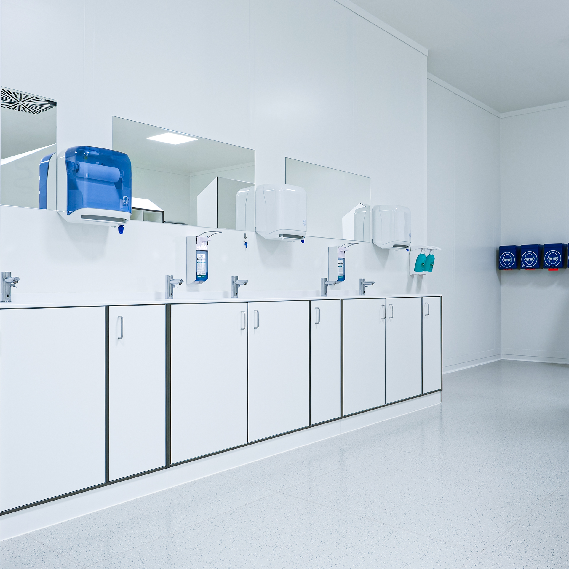 Mit unseren einzigartigen KEMMLIT-Produkten können wir insbesondere auch die Anforderungen von Reinräumen und Laboren optimal bedienen. Hygienische Oberflächen in langlebiger Qualität schaffen die idealen Arbeitsbedingungen.