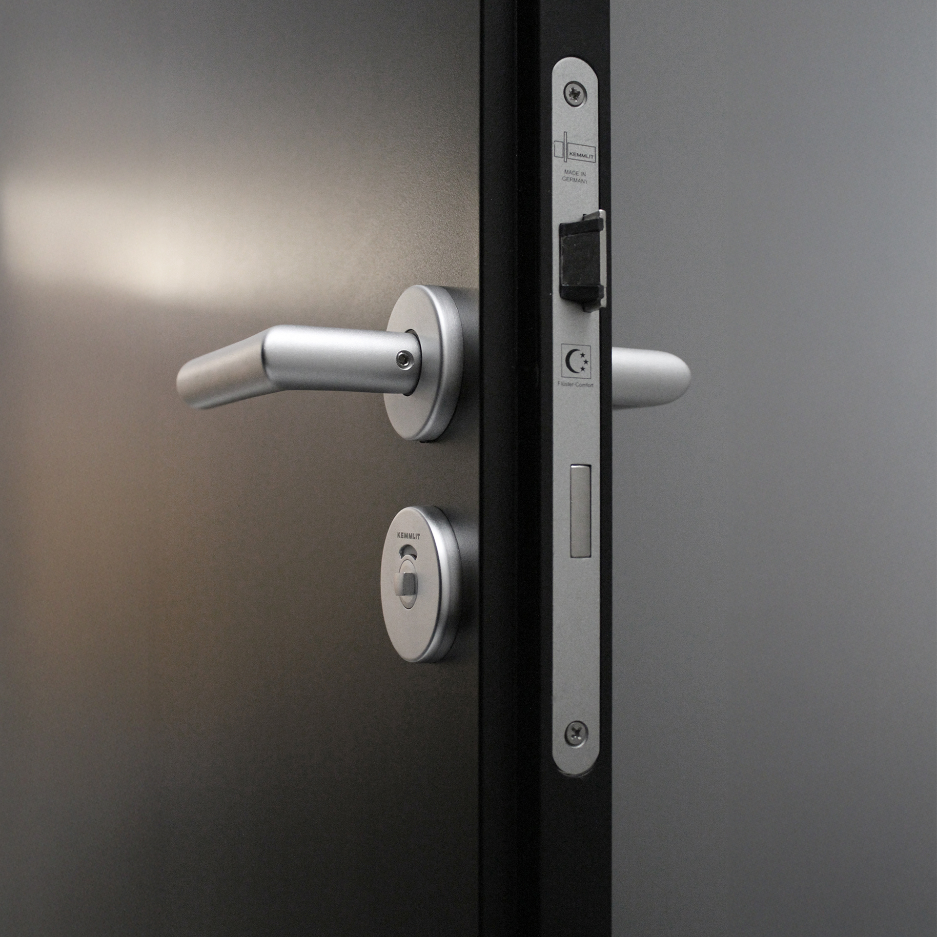 - robuste Griff- und Drückergarnituren aus Aluminium, Edelstahl oder Nylon.