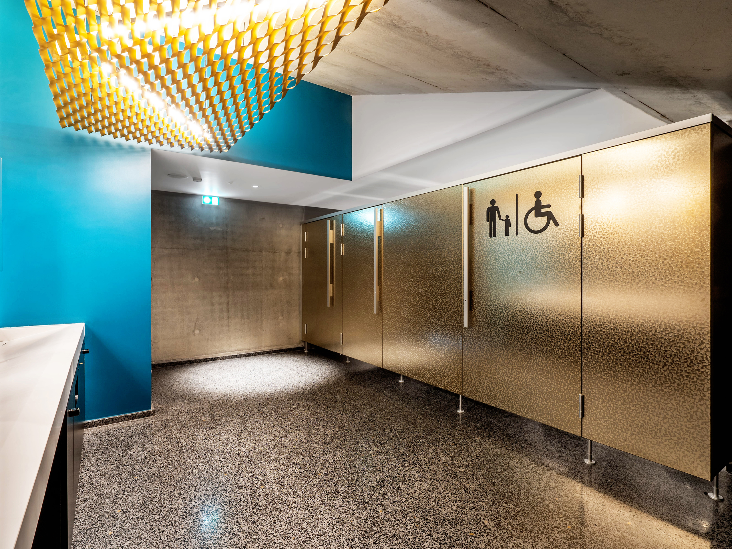 Zusätzlich sind individuelle Digitaldrucke möglich, mit denen sich Türen und Wandelemente gestalterisch personalisieren lassen. Besonders hervorzuheben ist die BiColor‑Option der classiccell‑Anlage: Durch unterschiedlich gestaltbare Innen- und Außenseiten lassen sich farbige Akzente setzen und individuelle Farbkonzepte realisieren. Diese Eigenschaft eignet sich hervorragend für Hallen- und Schwimmbäder, in denen klare Farbführungen, Zonierungen oder lebendige Gestaltungskonzepte gewünscht sind.