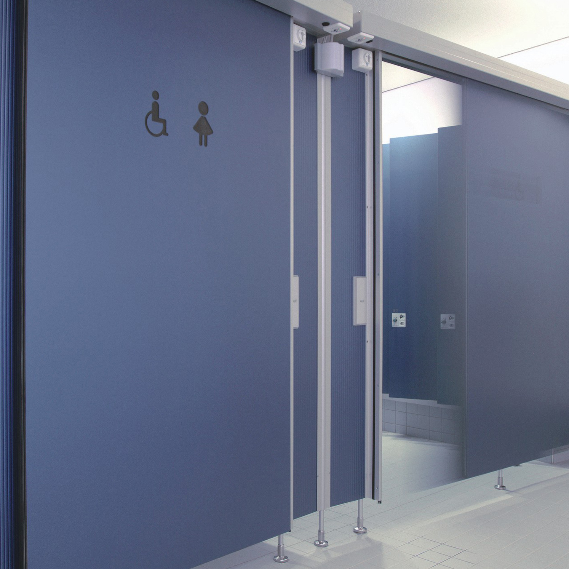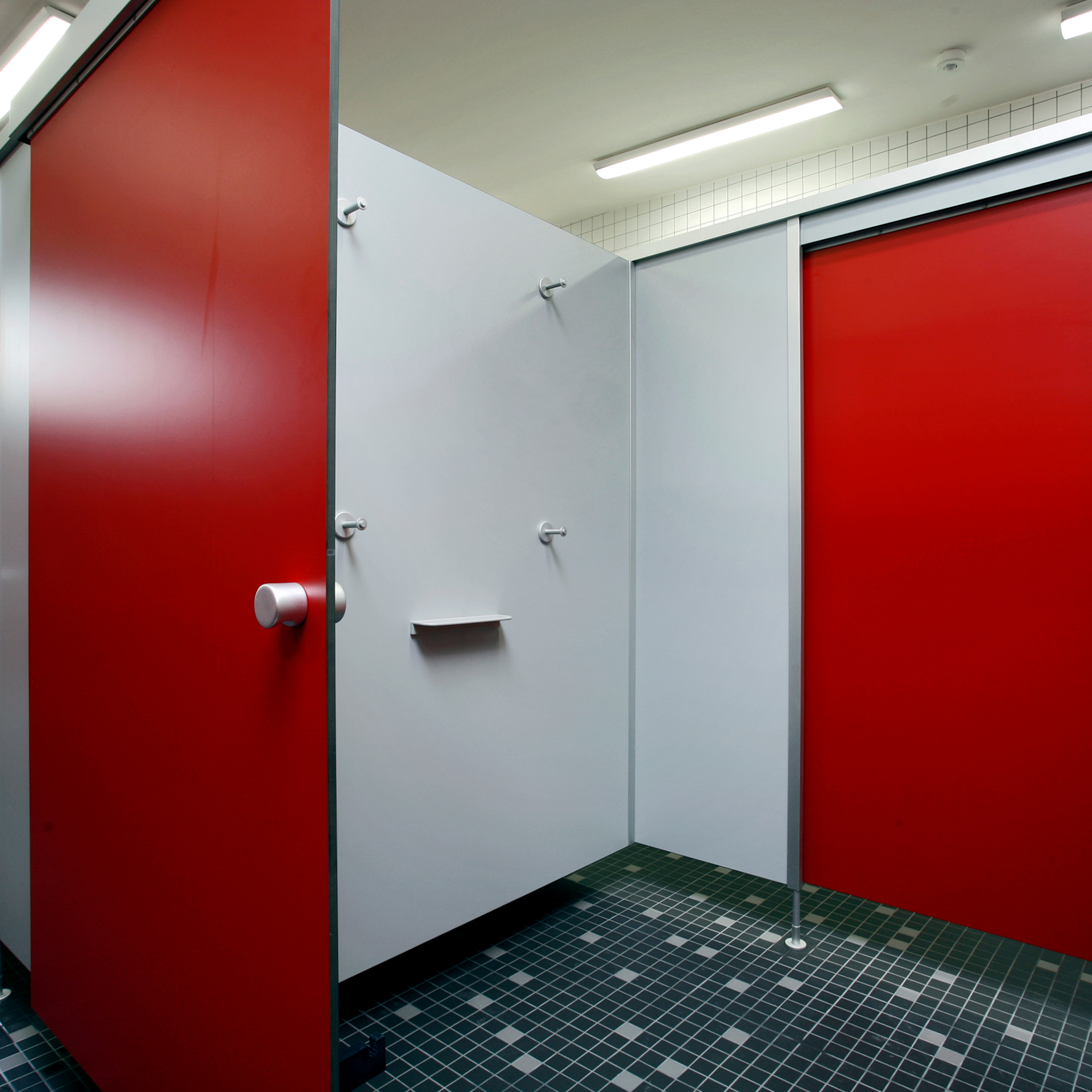Cronus kann neben klassischen WC-Kabinen auch als Wechselkabine, Duschabtrennung oder Umkleidekabine geplant werden. Optionale Ausstattungen wie freie-/besetzt-Anzeige, Fingerklemmschutz, unterschiedliche Schlossvarianten oder Digitaldrucke sind möglich.