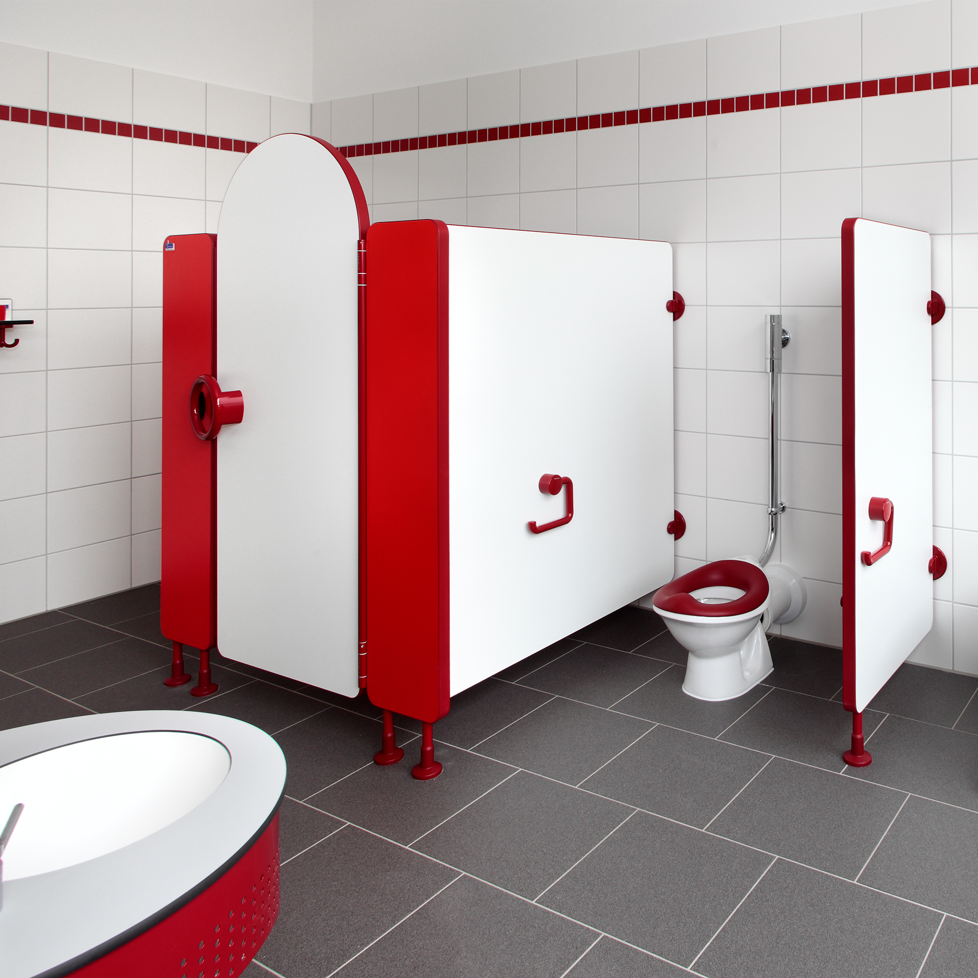 Diese können direkt mit den Kinderanlagen kombiniert werden und sorgen für ein einheitliches Erscheinungsbild im gesamten Sanitärbereich.