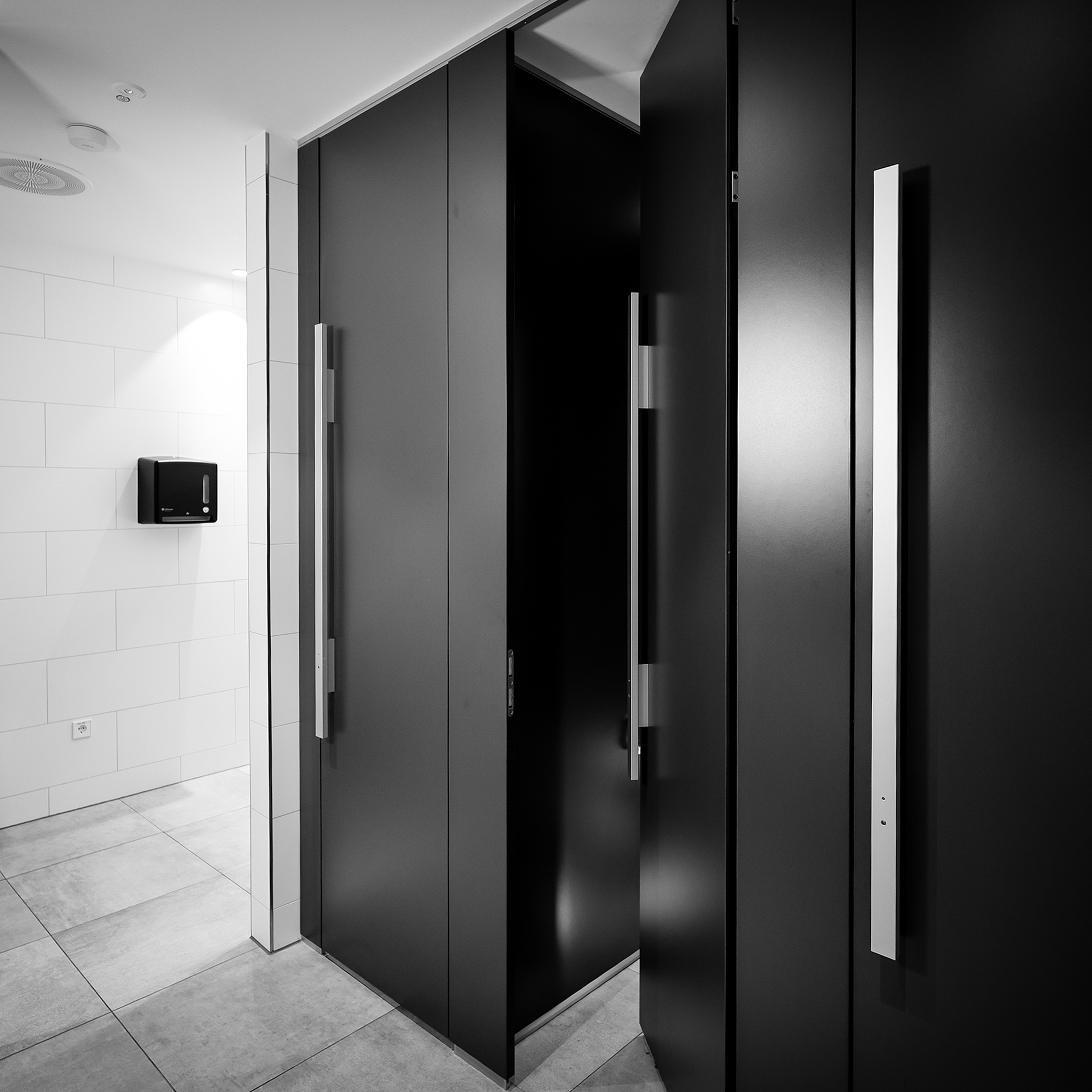 NiUU F ist ein designorientiertes und zugleich wirtschaftliches WC-Trennwandsystem für gewerbliche und öffentliche Sanitärbereiche mit moderater Beanspruchung. Typische Einsatzbereiche sind Büro- und Verwaltungsgebäude, Unternehmenszentralen, Arztpraxen, Kanzleien sowie weniger stark frequentierte gastronomische Einrichtungen.