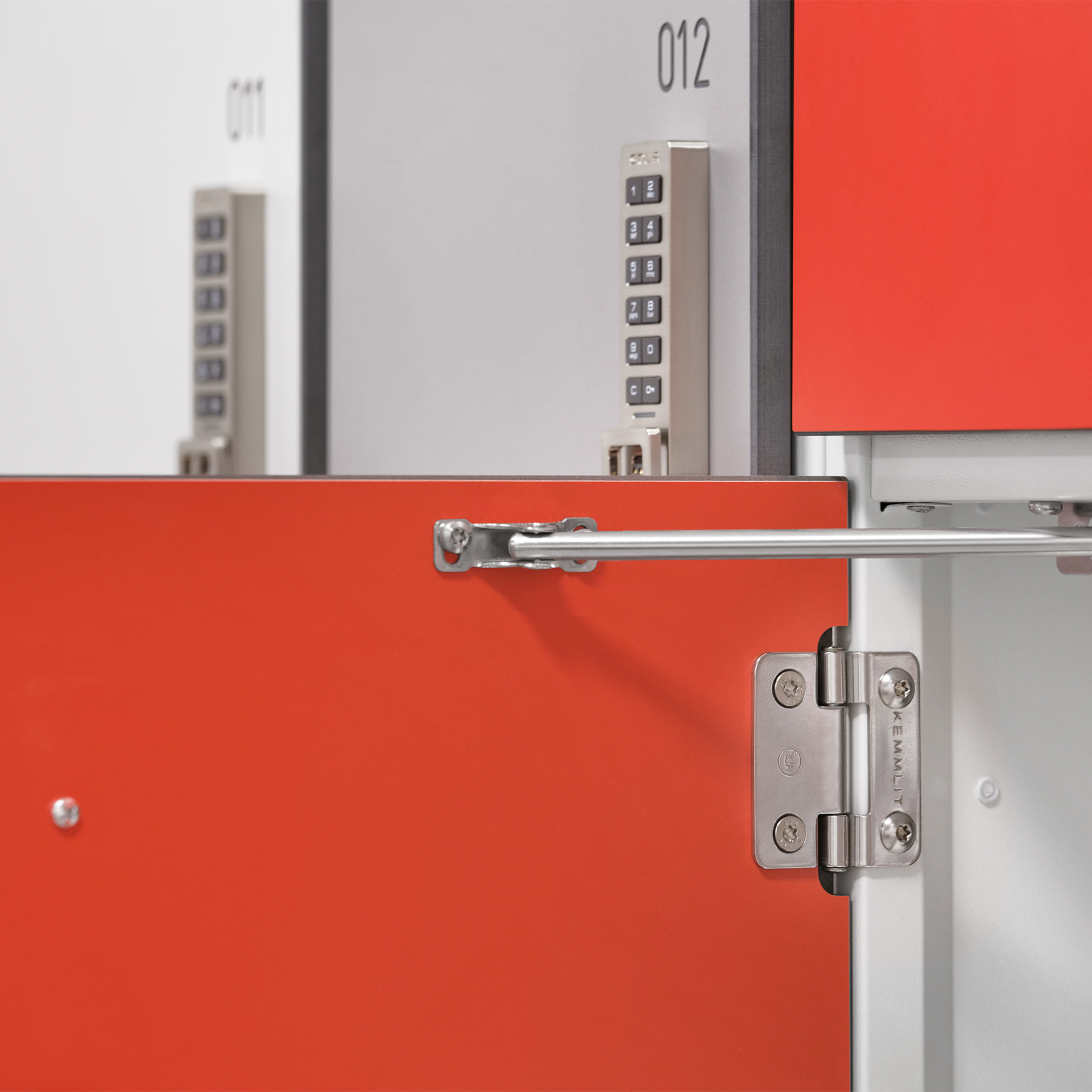 Wahlweise mit Stahl-, HPL- oder Glastüren erhältlich.