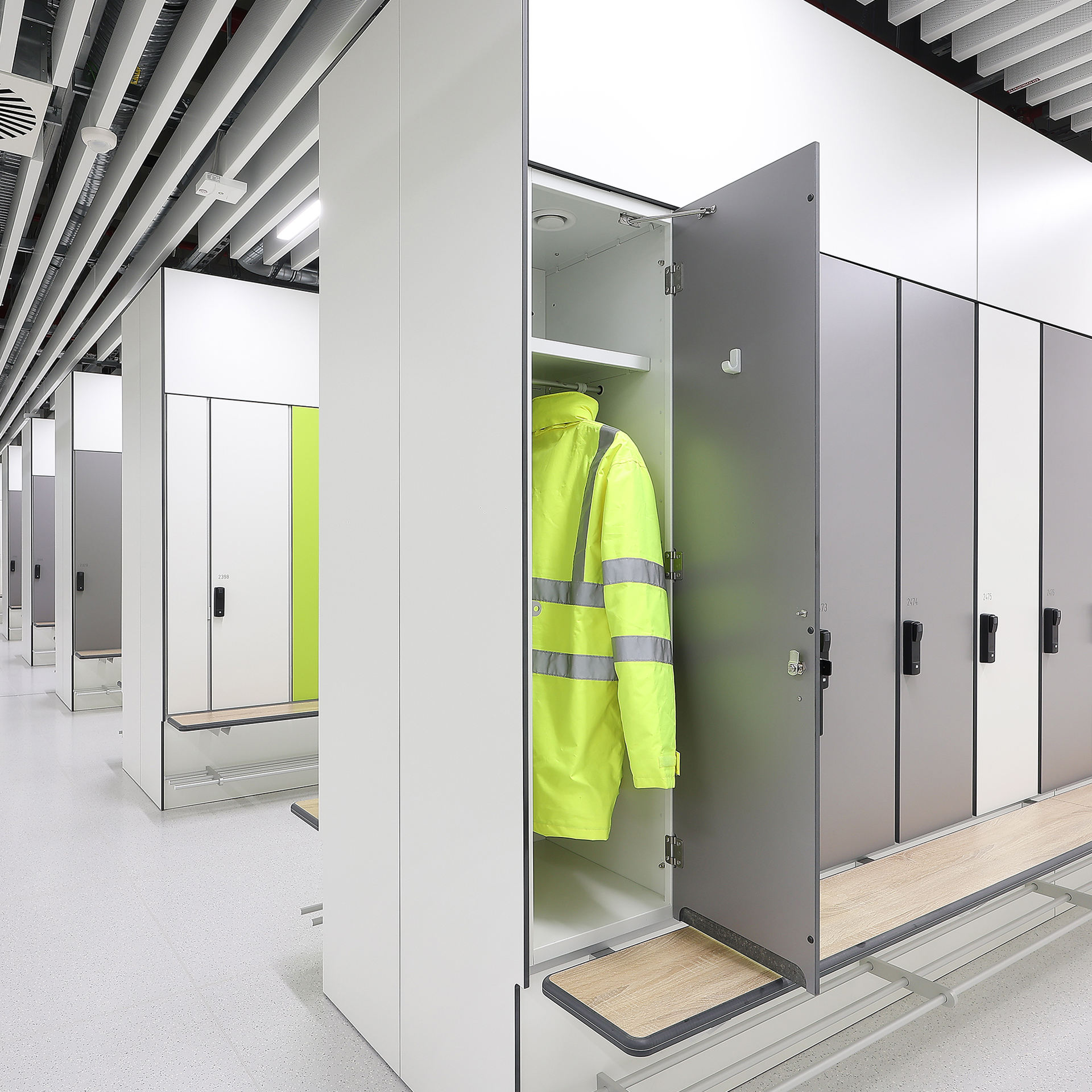 Stahlbasiertes Schranksystem mit verzinktem, hohlraumversiegeltem Korpus, hoher Stabilität und 20 Jahren Korrosionsschutzgarantie.