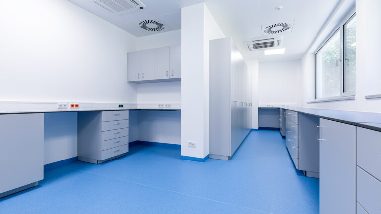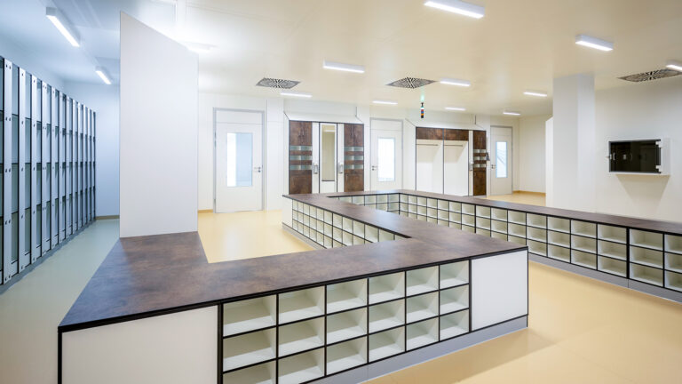 Unsere Möbel bestehen aus hochwertigen HPL-Oberflächen und robusten Kanten, die lösungsmittel- und desinfektionsmittelbeständig sind. Sie erfüllen alle Anforderungen für den Einsatz in hygienisch sensiblen Bereichen und behalten ihre Qualität auch bei regelmäßiger Reinigung über viele Jahre hinweg.