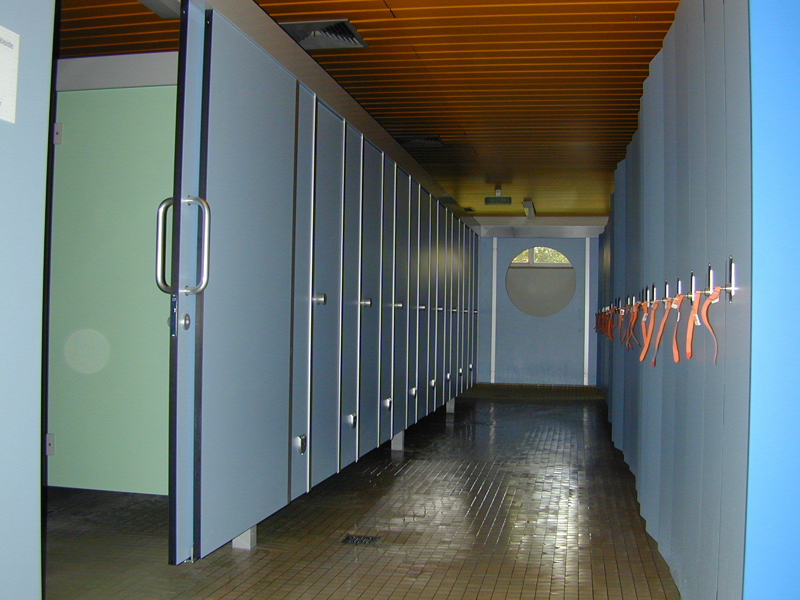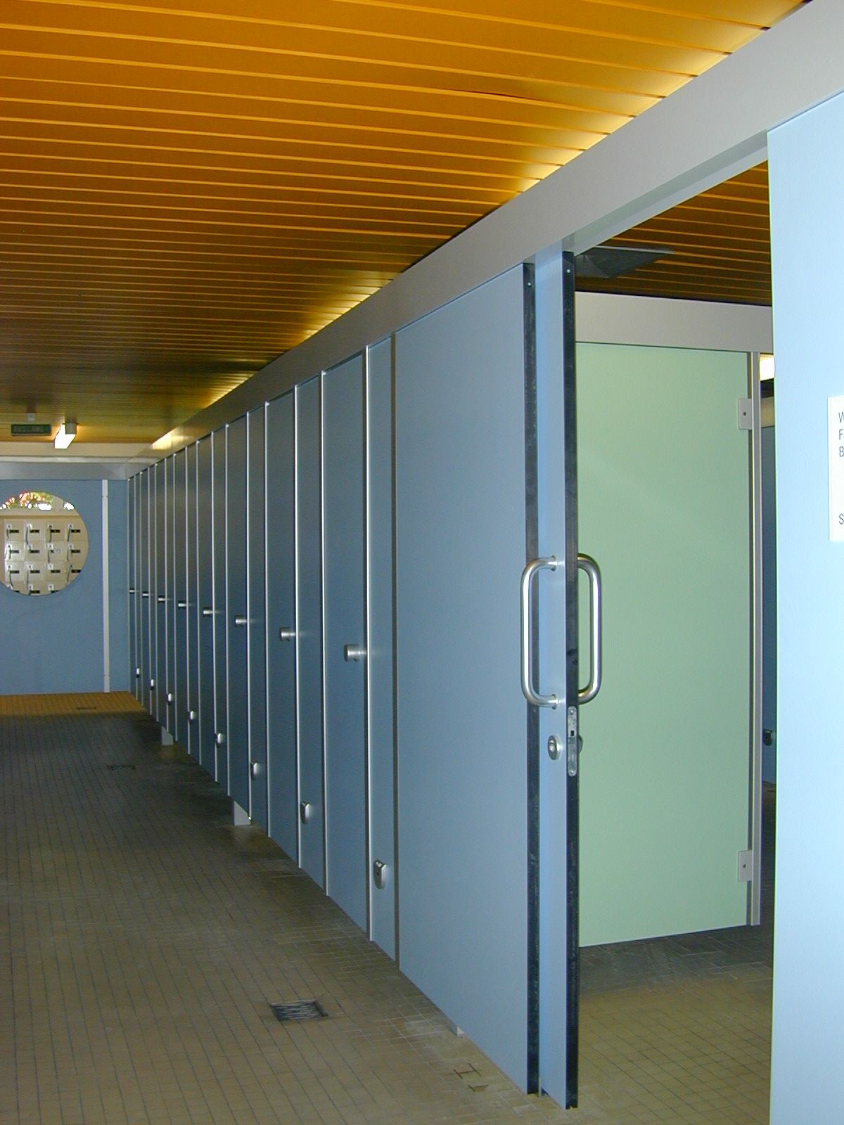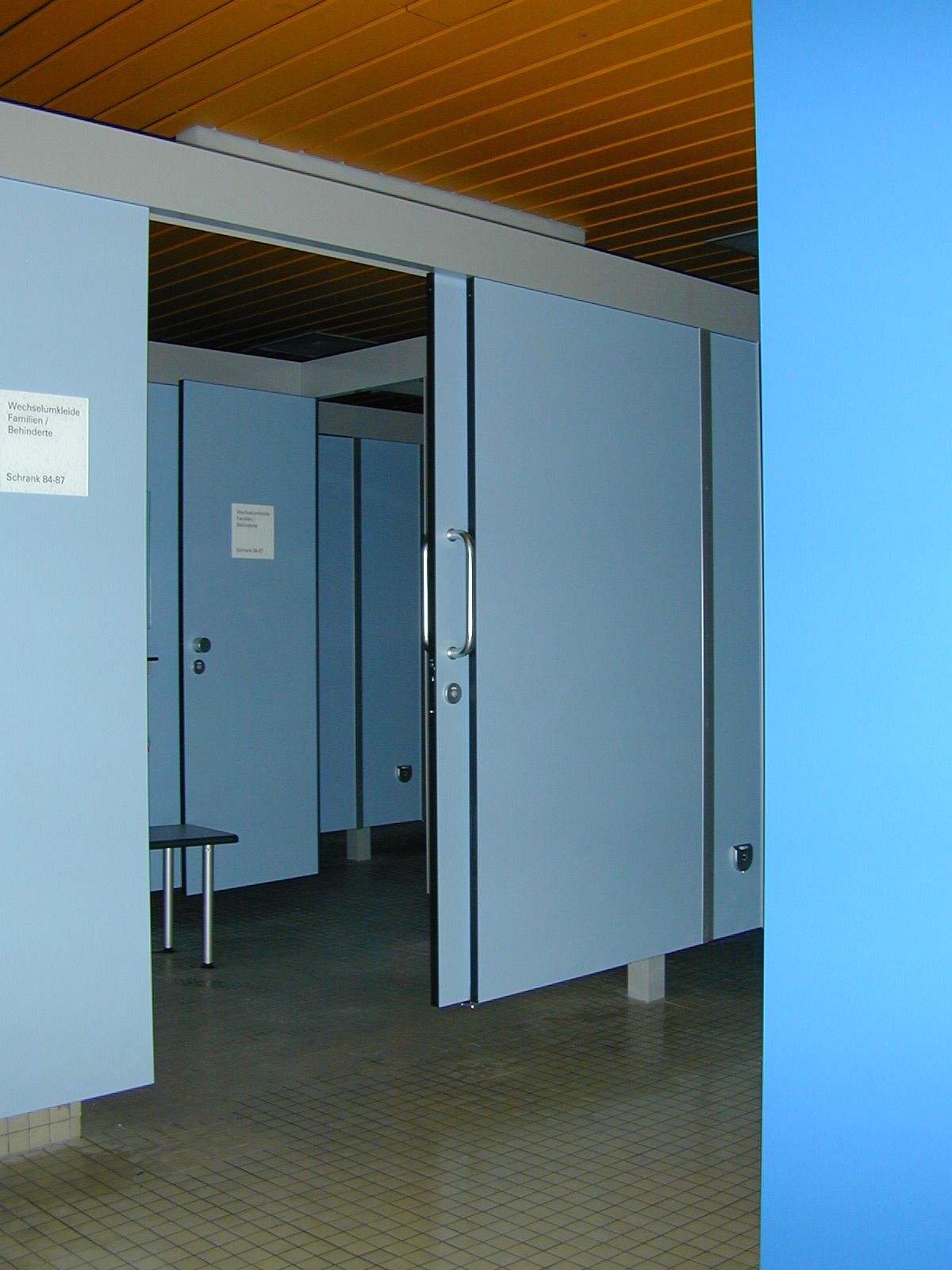 Im Hallenbad München Giesing Harlaching wurden die WC-Trennwände Cronus von Kemmlit installiert, um die Sanitärbereiche funktional, langlebig und farblich ansprechend zu gestalten. Dabei kam das hängende WC-Trennwandsystem Cronus zum Einsatz, das besonders durch seine stabile Konstruktion und die 13 mm starken wasserresistenten HPL-Vollkernplatten überzeugt. Das System ist für Nass- und Feuchträume geeignet und lässt sich flexibel an die räumlichen Gegebenheiten anpassen. Durch die modulare Bauweise kann Cronus als WC-Kabine oder Duschabtrennung eingesetzt werden.