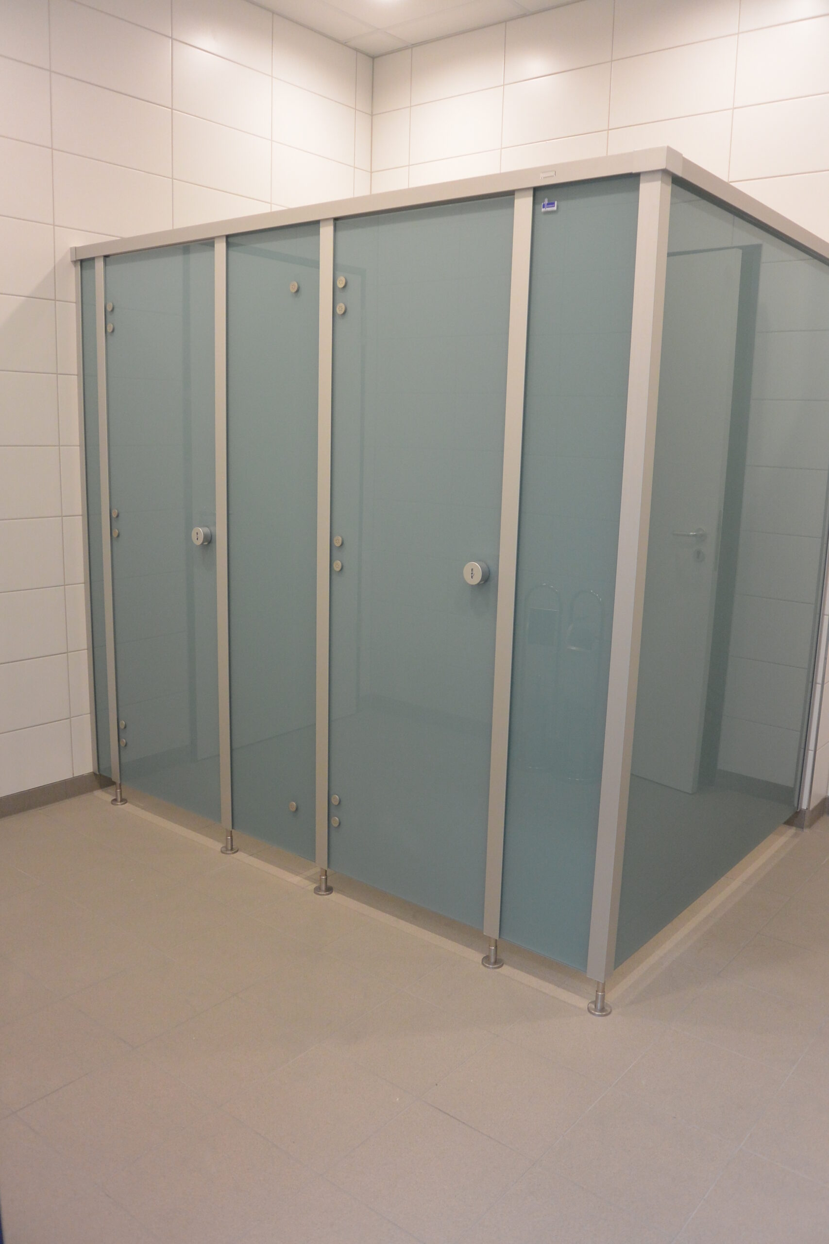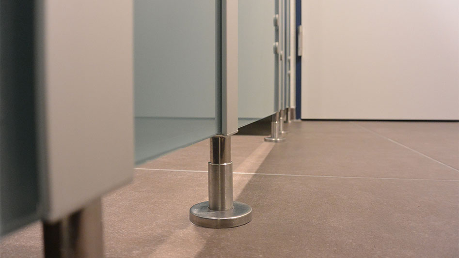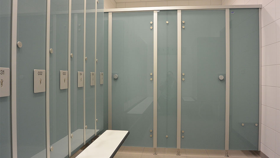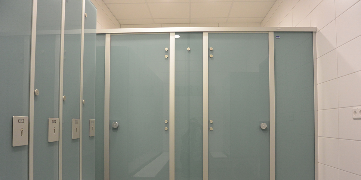 Für das Projekt bei Alpha Laser in Puchheim wurden die WC-Trennwände cronus Glas in den Farben hellblau 5203 und kristallweiß 9108 installiert. Die Konstruktion aus eloxierten Aluminiumprofilen, die Bänder, Garnituren und Füße aus Edelstahl garantieren eine langlebige und stabile Ausführung.