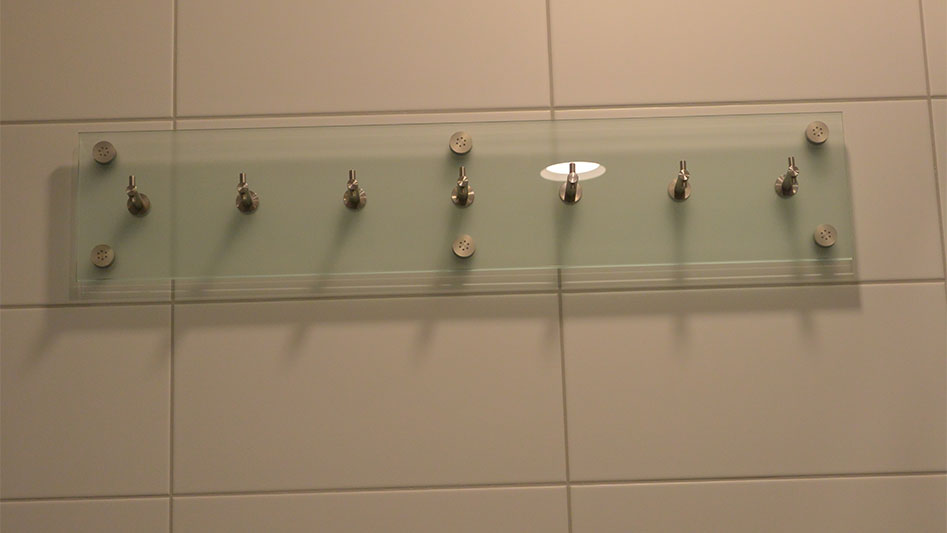 - Hakenleiste aus Glas mit Haken aus Edelstahl