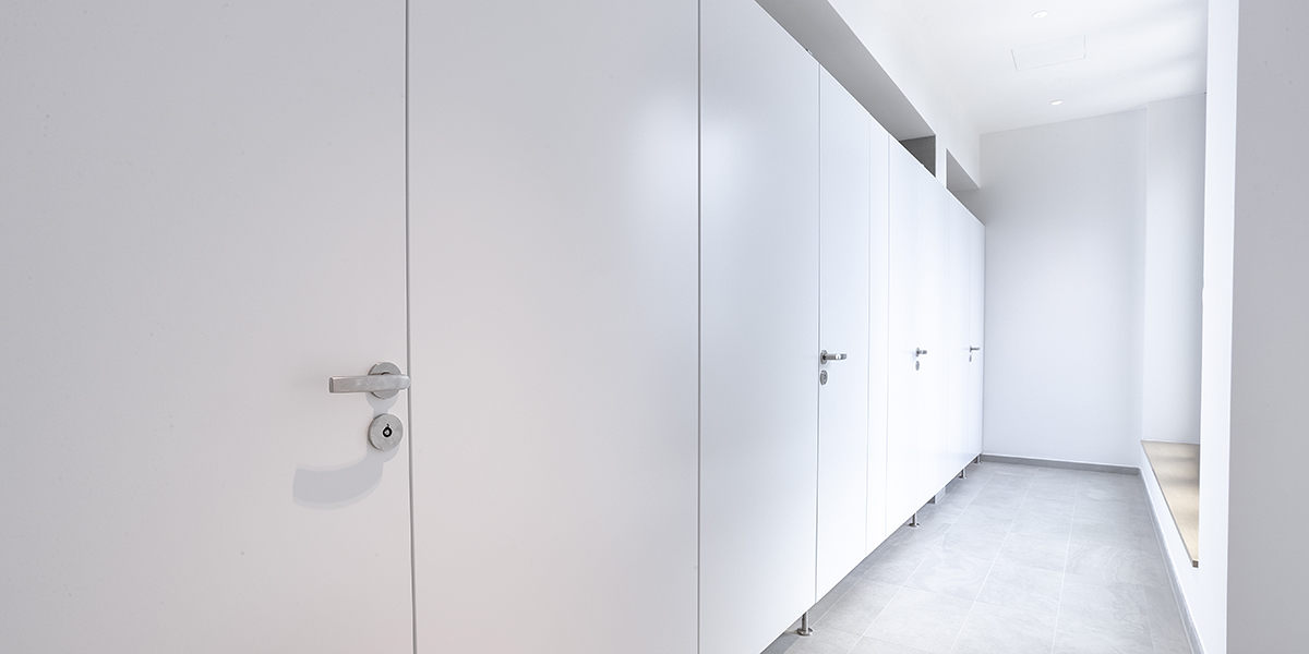 Das System classiccell ist der Klassiker aus Metall und zeichnet sich durch seine glattflächige, moderne Optik aus. Die Tür- und Wandelemente bestehen aus einer 42 mm starken Metallkonstruktion (wahlweise Edelstahl, Aluminium oder Stahl), was hohe Stabilität garantiert. Zudem erfüllt die antibakterielle Oberfläche höchste Hygienestandards.
