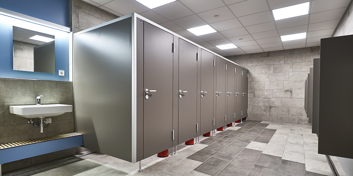 Die PRIMO Kn Trennwände wurden gezielt für die Anforderungen öffentlicher Sanitärbereiche entwickelt. Mit der 42 mm starken Verbundkonstruktion, den robusten Drei-Rollen-Kantenbändern und der wasserfesten HPL-Oberfläche garantieren sie Stabilität, Langlebigkeit und einfache Reinigung. Die schwebende Ausführung sorgt für ein modernes, leichtes Erscheinungsbild, das den Raum aufwertet und die Nutzung durch die Campinggäste erleichtert.