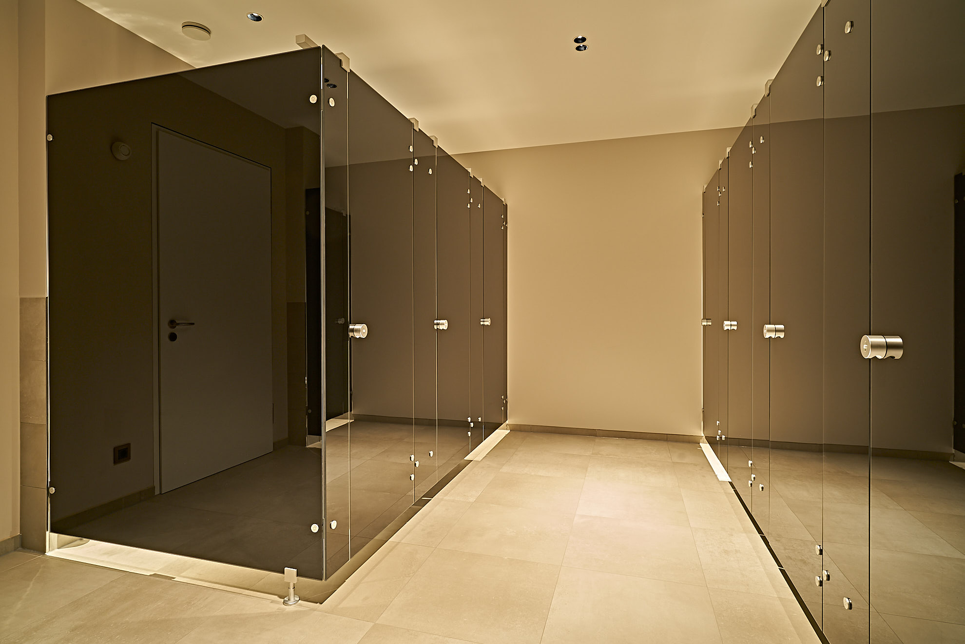 Für die exklusiven Sanitärbereiche des Hotels Der Öschberghof lieferte KEMMLIT eine Lösung, die modernes Glas-Design mit intelligenter Technik verbindet. Zum Einsatz kam das WC-Trennwandsystem NOXX smart.
