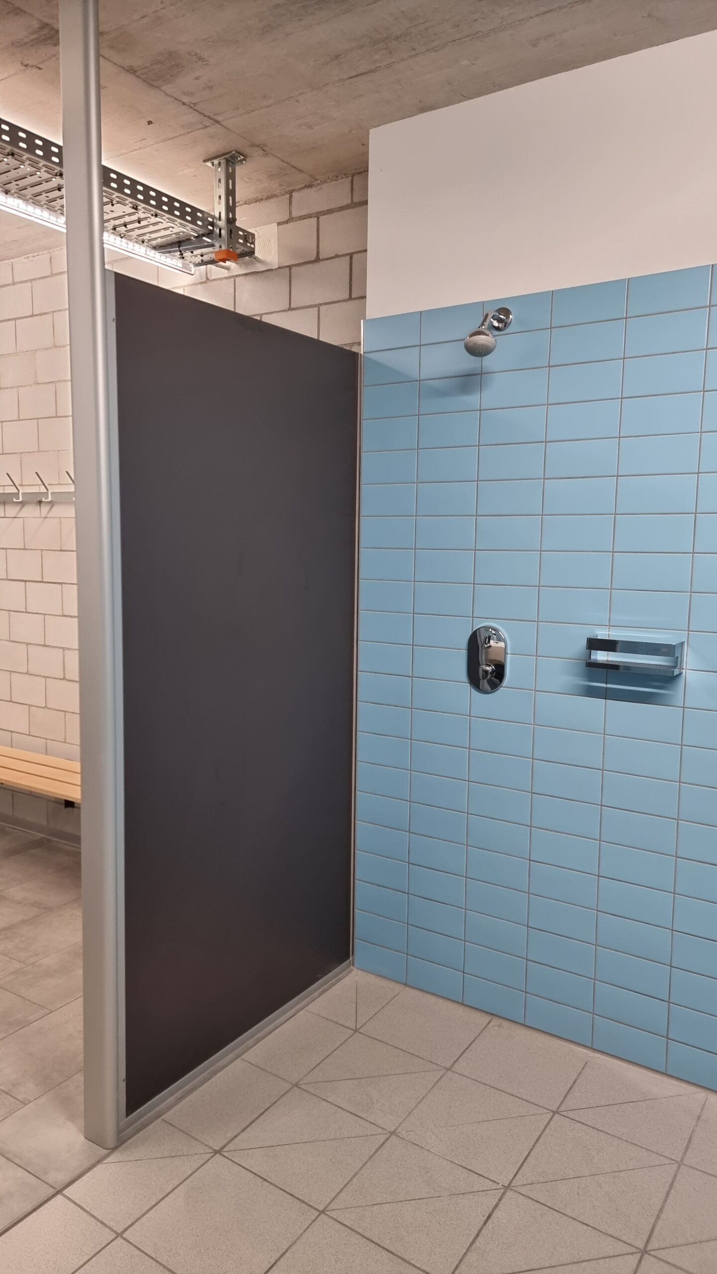 Die Sanitärbereiche der Dreifach-Turnhalle in Gossau, Schweiz wurden mit dem Trennwandsystem BASIC Typ D von KEMMLIT ausgestattet. Das System eignet sich besonders für stark genutzte Trockenräume und überzeugt durch eine stabile Konstruktion sowie ein sehr gutes Preis-Leistungs-Verhältnis.