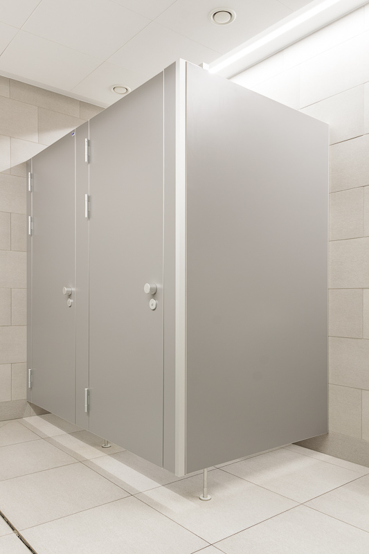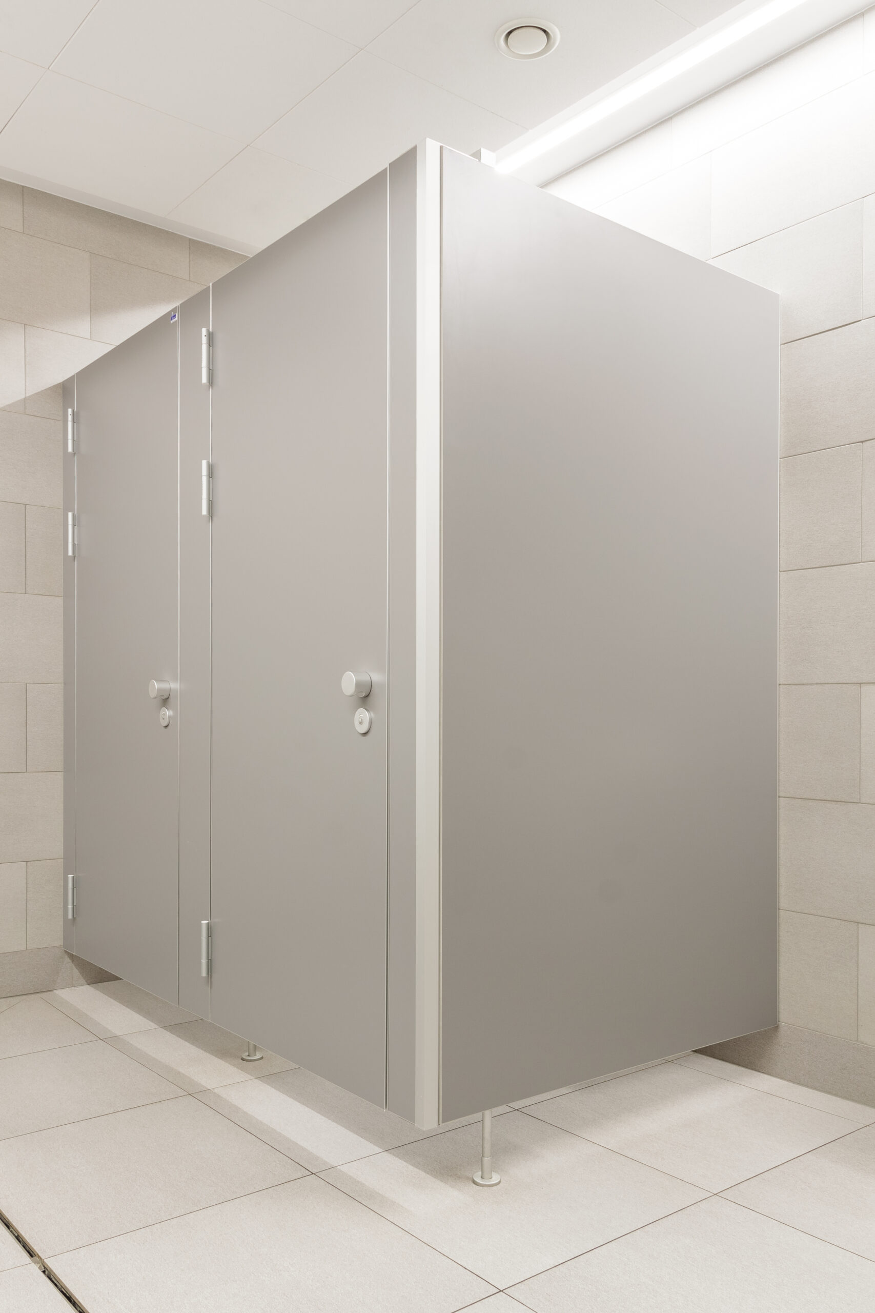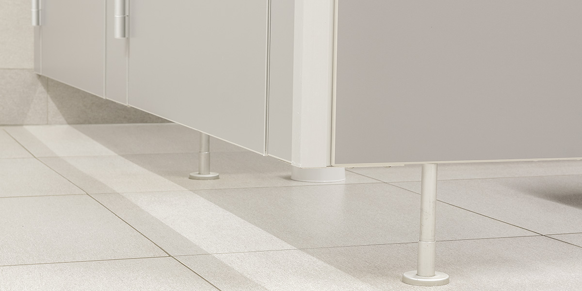 - WC-Trennwandsystem NiUU in schwebender Ausführung – Füße und Stabilisator zurückgesetzt