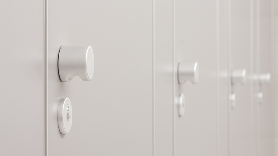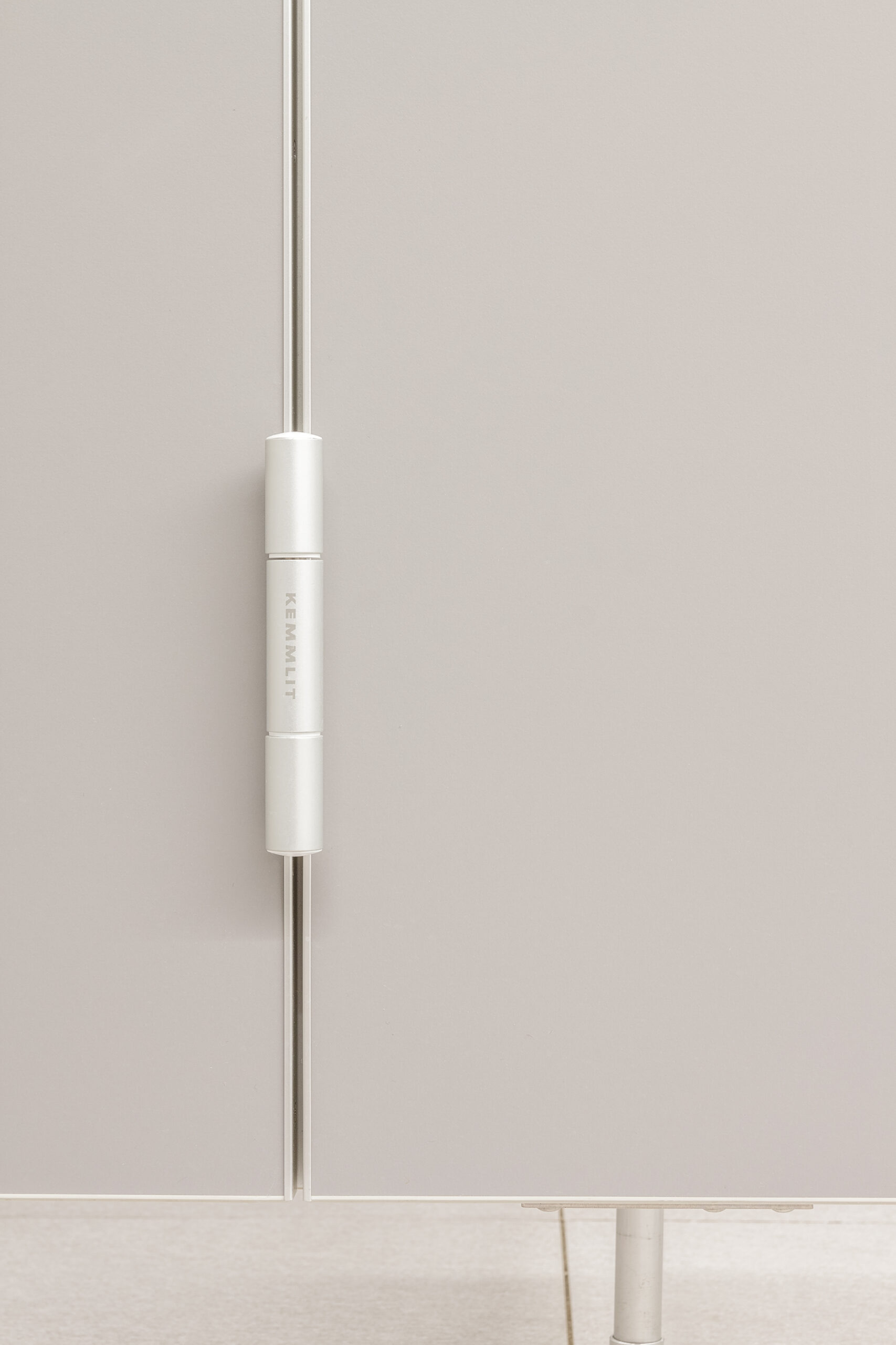 Das System überzeugt durch seine glattflächige Front mit gefälzten Türen, die eine elegante und ruhige Raumwirkung erzeugen. Die hochwertigen Holzwerkstoffplatten sind mit massiven ABS-Kanten ausgestattet, die das System besonders widerstandsfähig gegen Stöße und Kratzer machen – ideal für den harten Alltag im Einzelhandel.