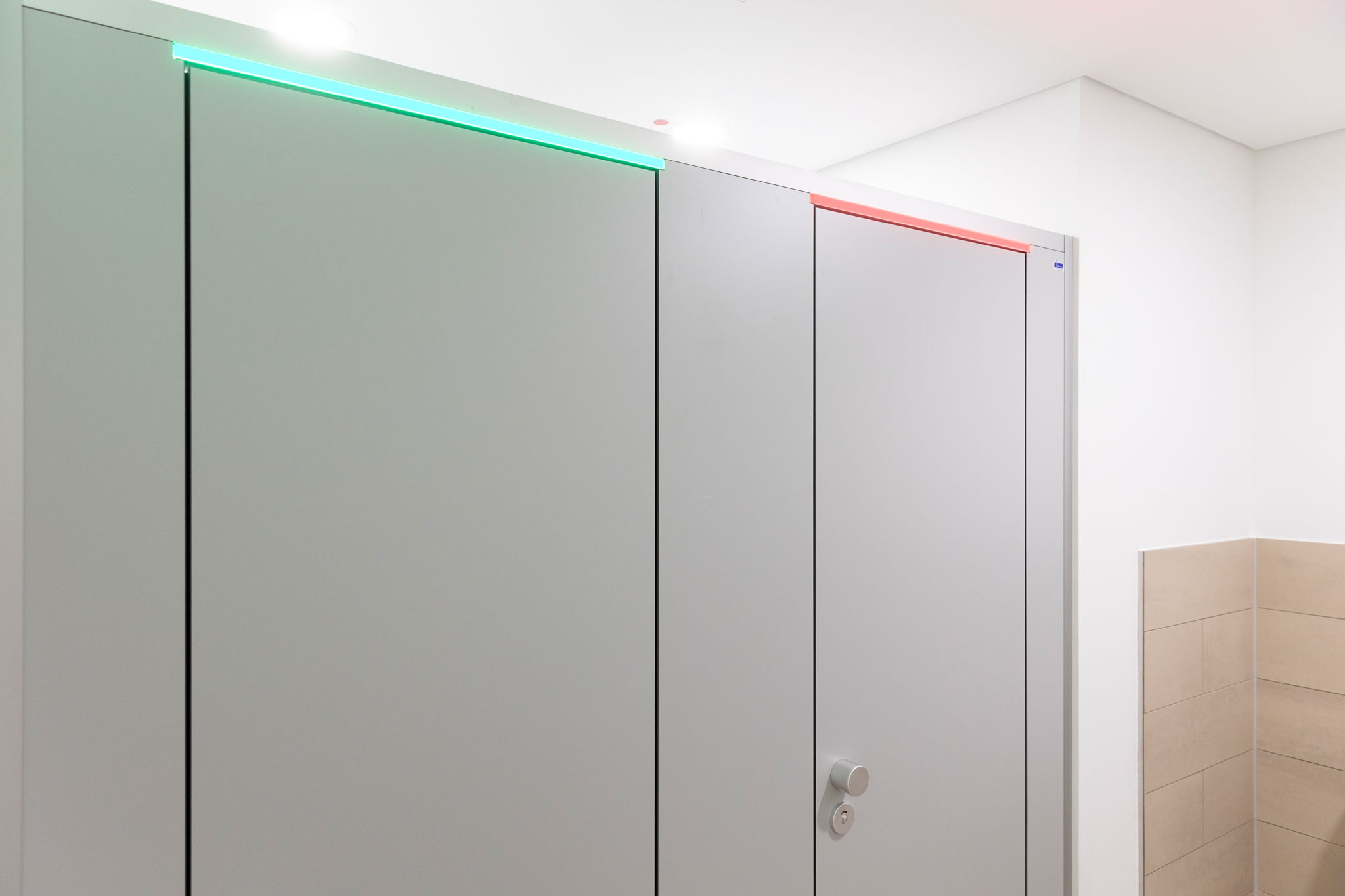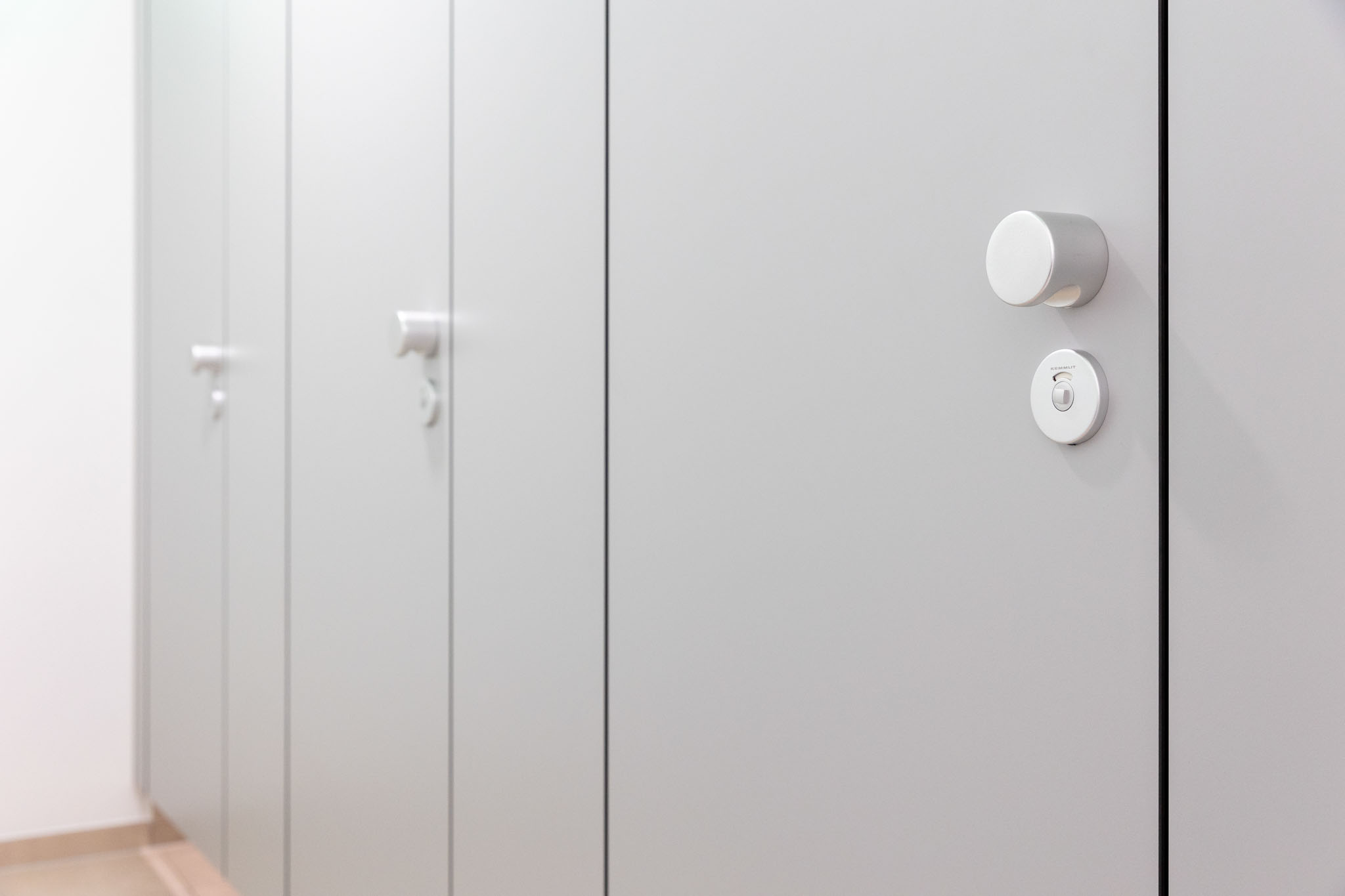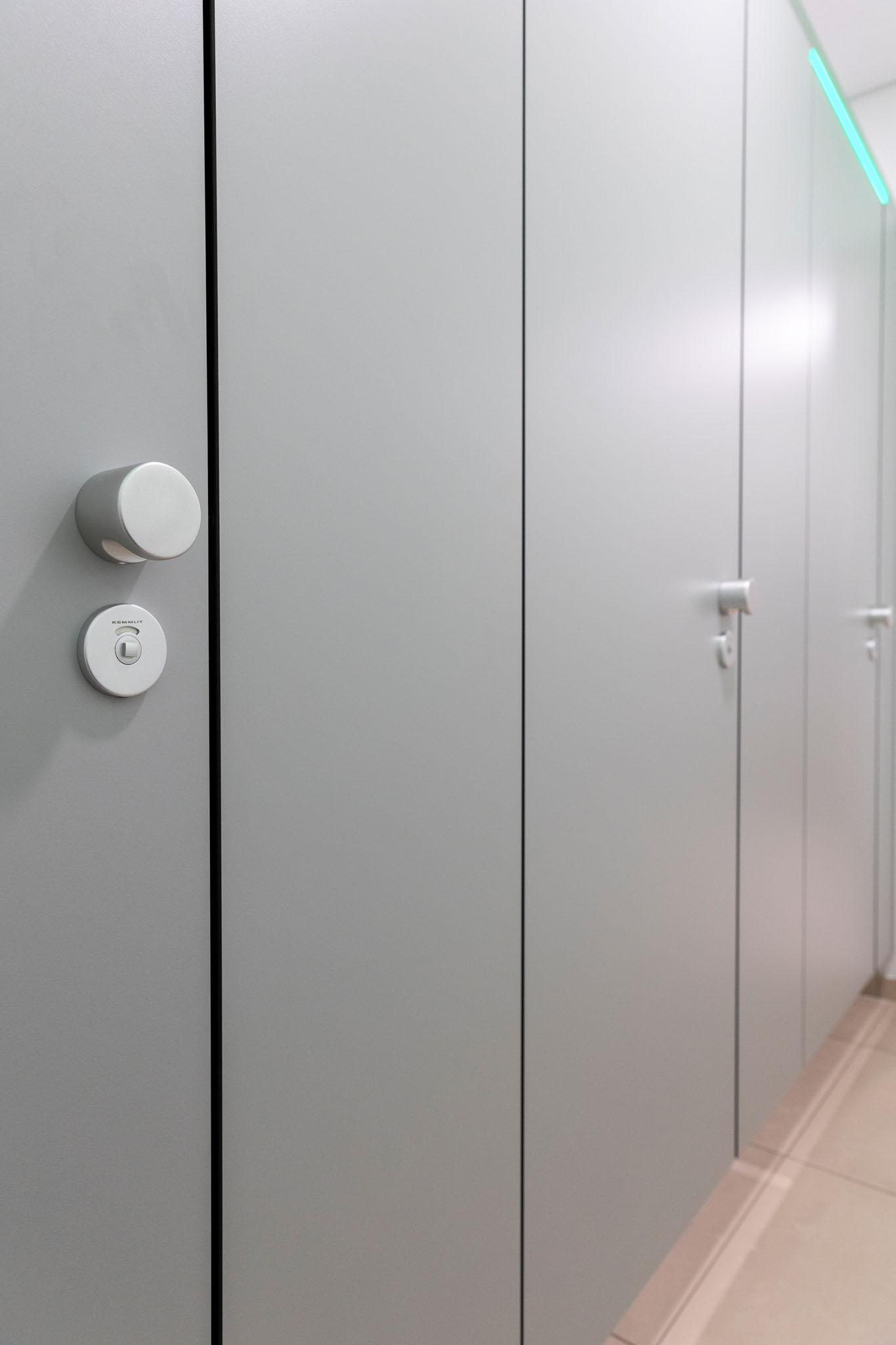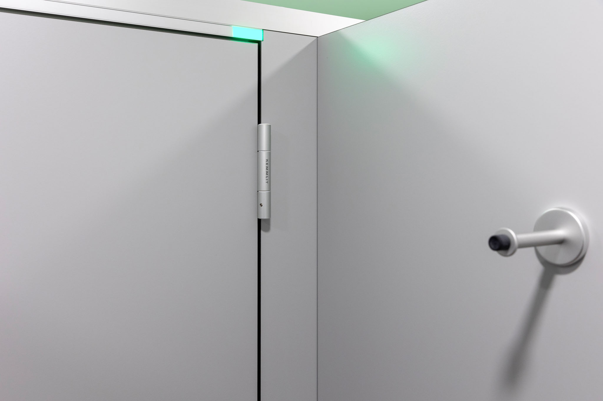 Der hohe Komfort wird durch die Soft-Close Komfortschließung für geräuscharmes Schließen gewährleistet. Zudem setzt die integrierte LED Frei-/Besetzt-Anzeige (KEMlight) ein optisches Highlight. Diese Anzeige ist zudem per App komfortabel und individuell steuerbar. Die Oberflächen sind wahlweise mit antibakterieller und Anti-Finger-Print Funktion ausgestattet. Auf das System gewährt KEMMLIT die 7 Jahre Garantie.