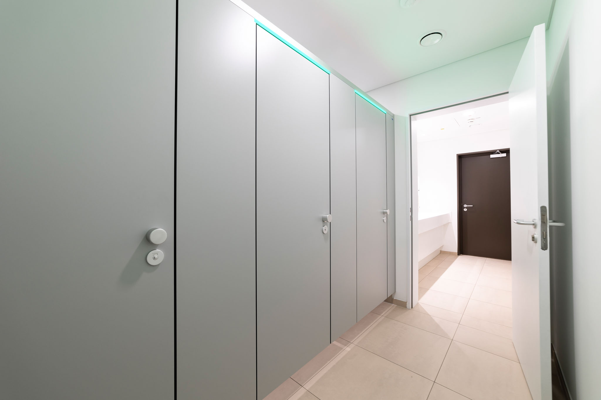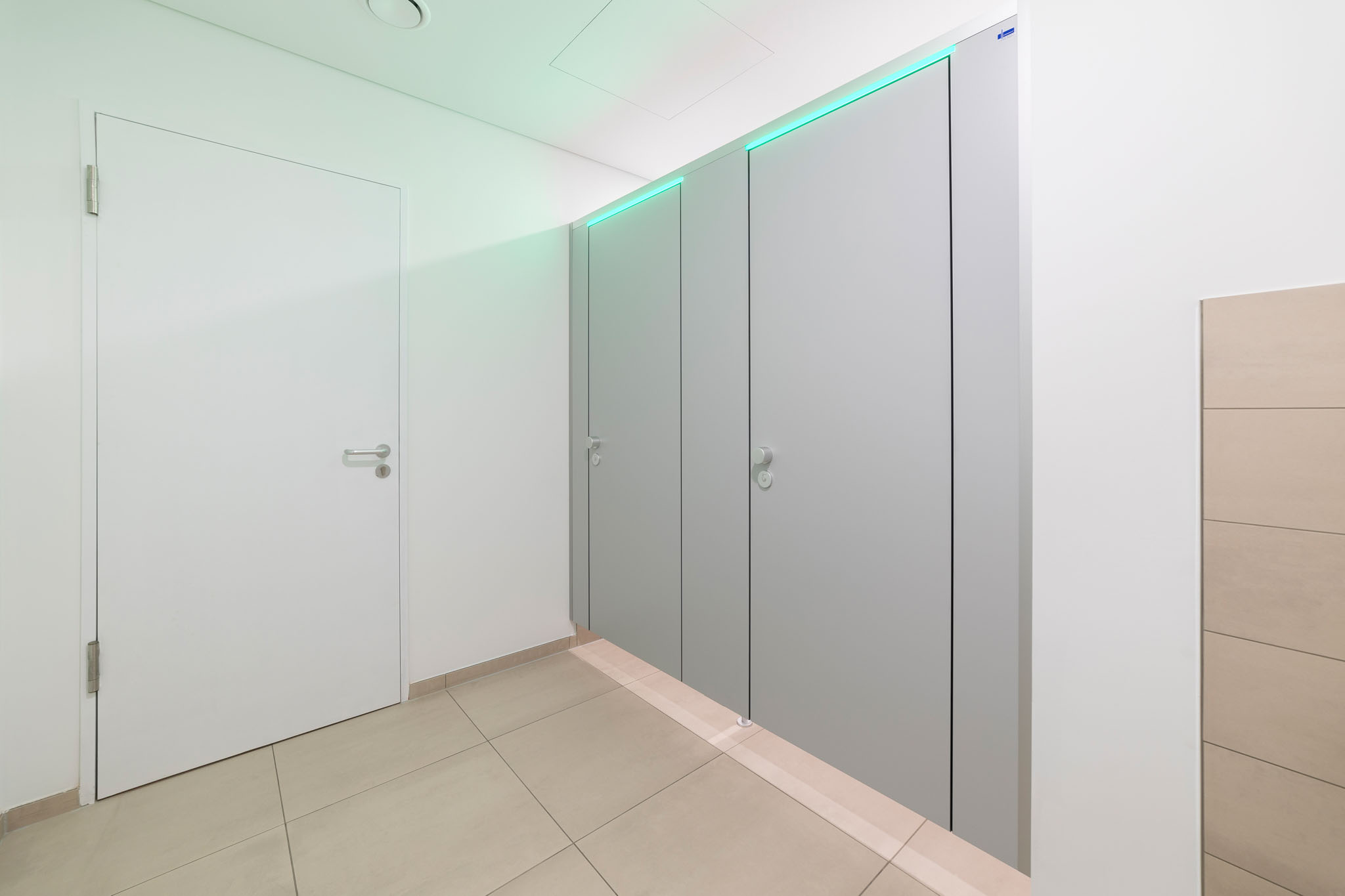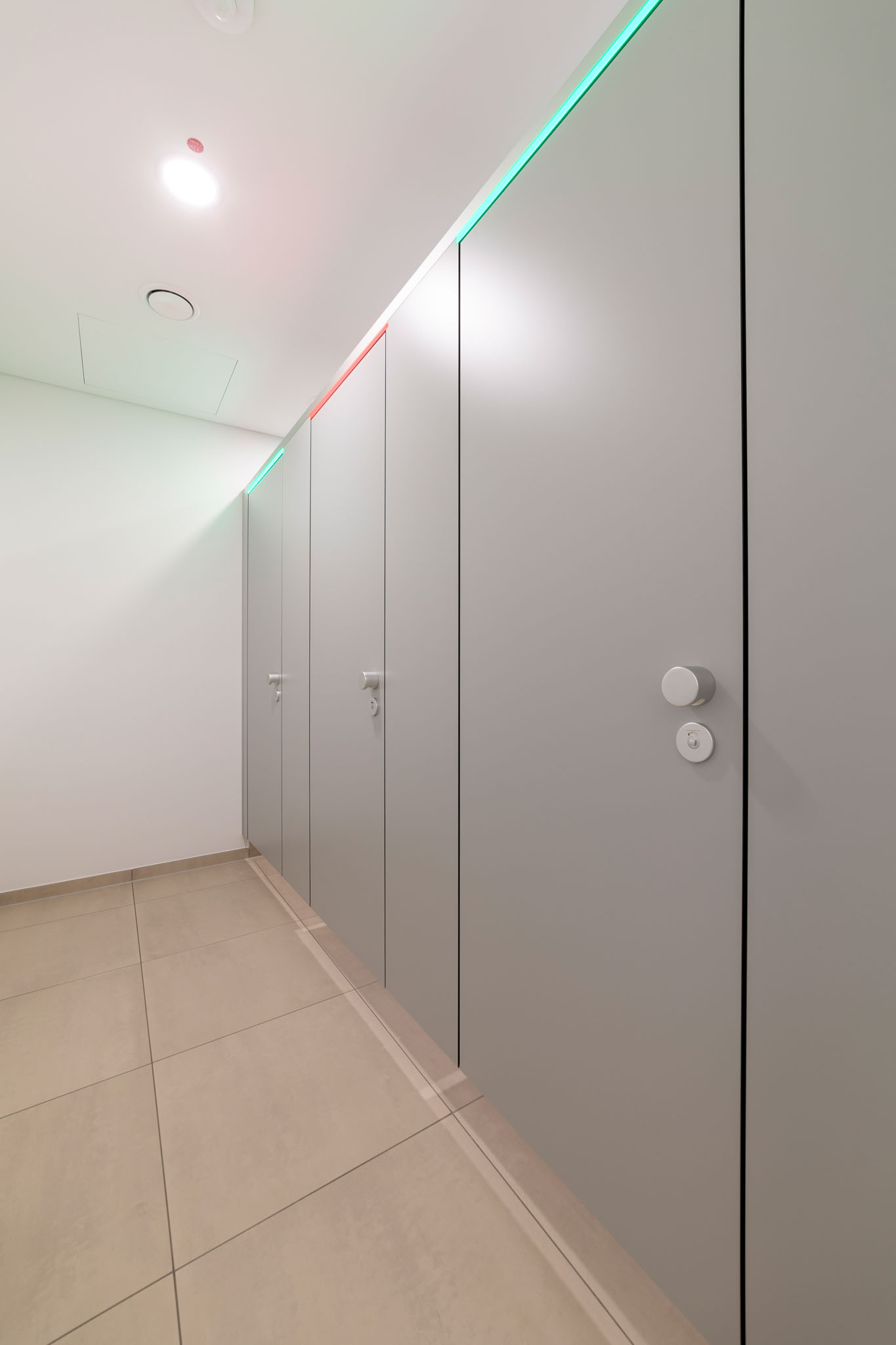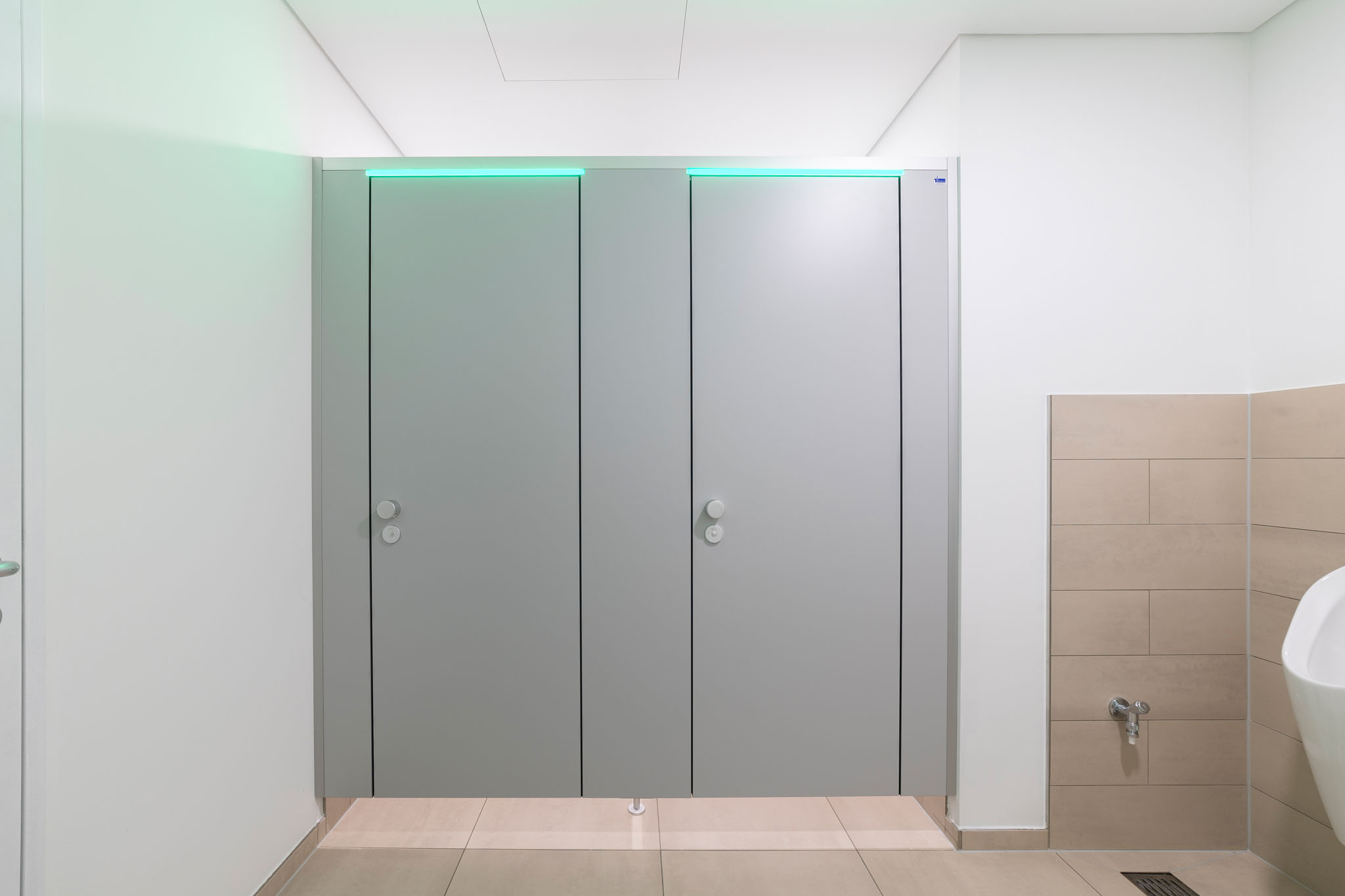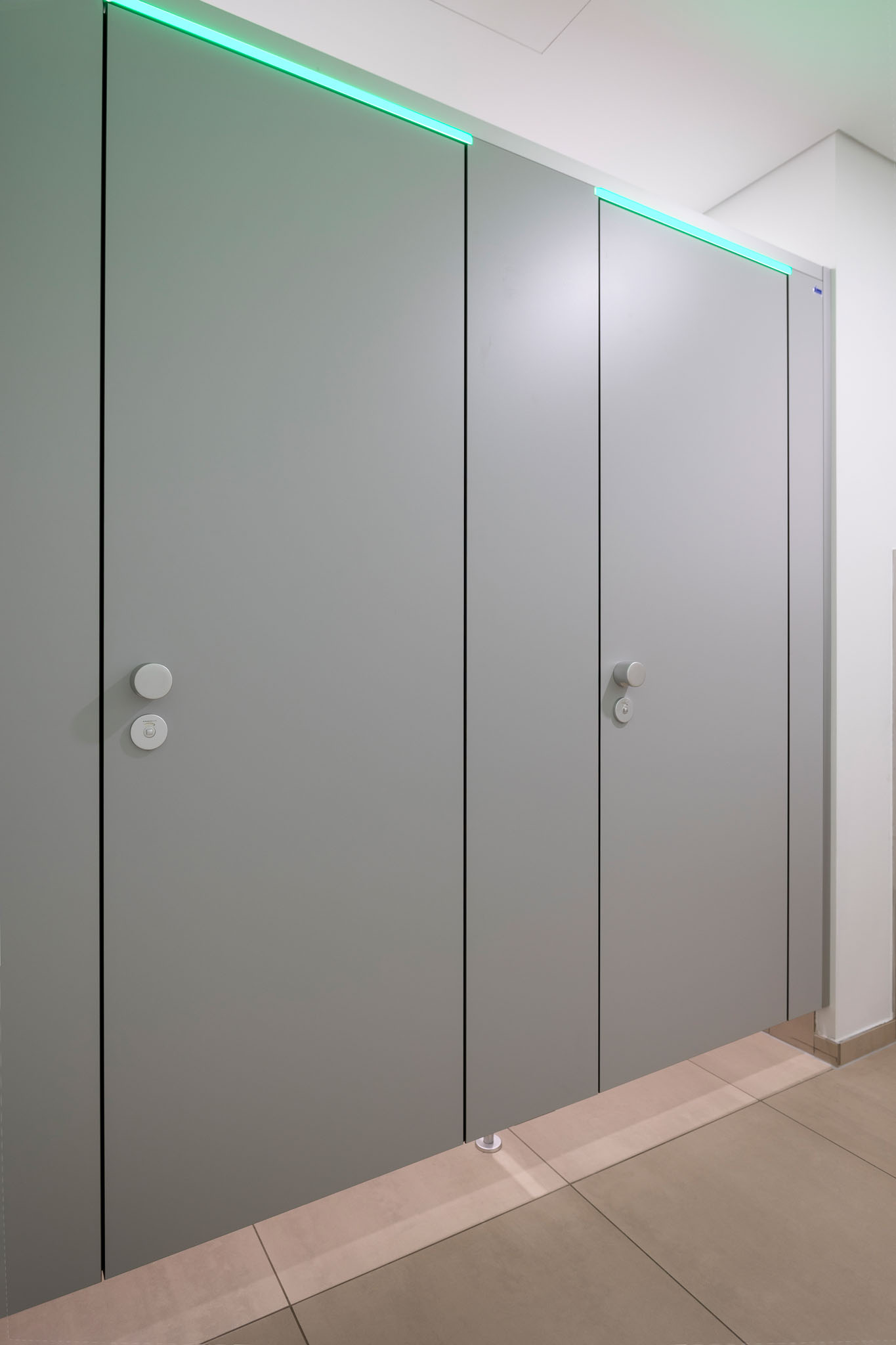 Der hohe Komfort wird durch die Soft-Close Komfortschließung für geräuscharmes Schließen gewährleistet. Zudem setzt die integrierte LED Frei-/Besetzt-Anzeige (KEMlight) ein optisches Highlight. Diese Anzeige ist zudem per App komfortabel und individuell steuerbar. Die Oberflächen sind wahlweise mit antibakterieller und Anti-Finger-Print Funktion ausgestattet. Auf das System gewährt KEMMLIT die 7 Jahre Garantie.