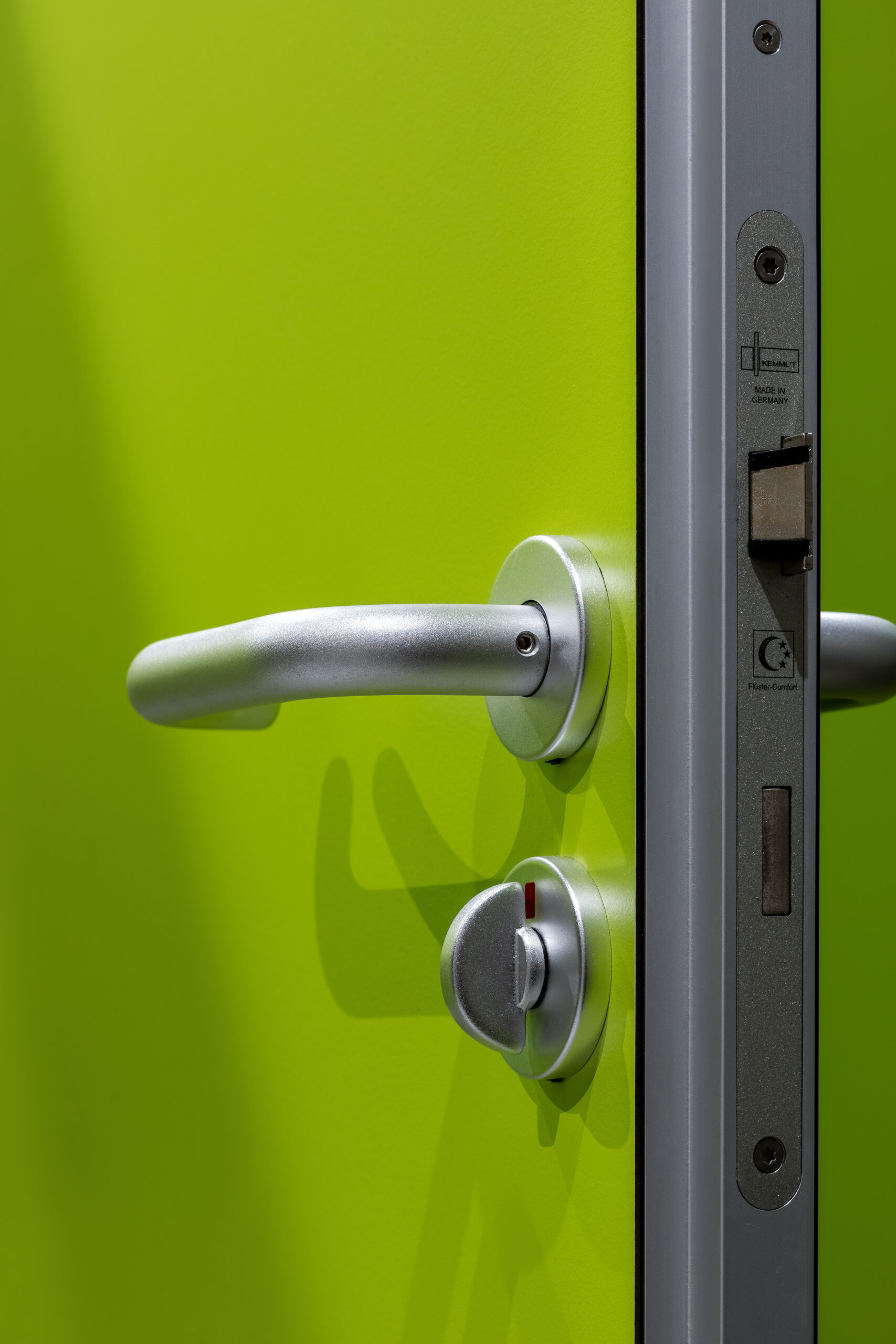 Für die Fit One Filiale in Warschau lieferte KEMMLIT das WC-Trennwandsystem PRIMO Kn in frischem Limonengrün (6715). Die robuste 42 mm Verbundkonstruktion mit innenliegender PU-Verstärkung garantiert höchste Stabilität und Langlebigkeit. Alle Türen und Wandelemente sind glattflächig und gefälzt, ausgestattet mit massiven Drei-Rollen-Kantenbändern aus Edelstahl für besonders geräuscharmes und sicheres Schließen.