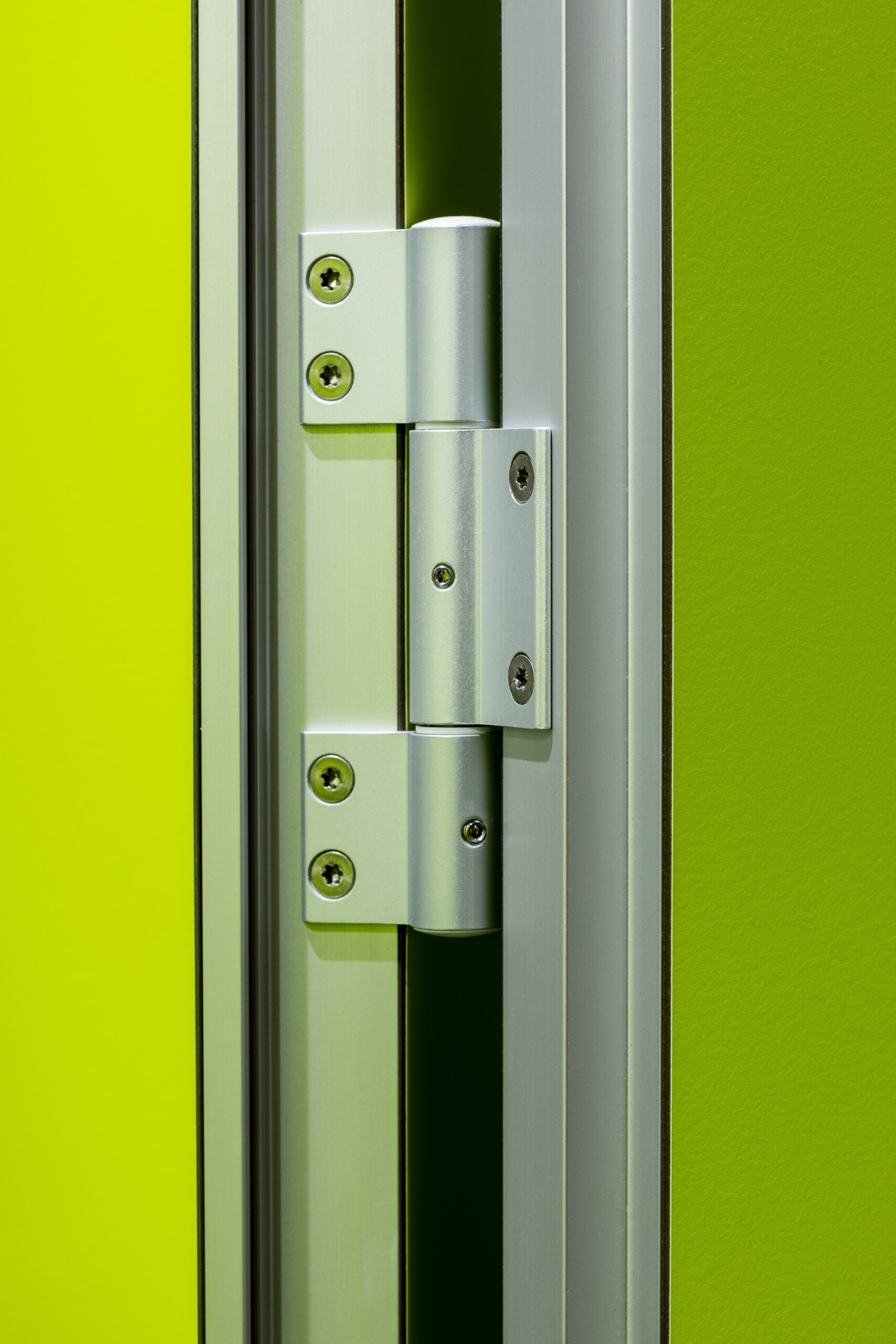 Die Kombination aus eloxierten Aluminiumprofilen, Stabilisator, Bändern, Garnituren und Füßen sorgt für eine standfeste und optisch ansprechende Lösung, die sich ideal für stark genutzte Nassbereiche eignet. Dank der hochwertigen, wasserfesten HPL-Oberfläche ist die Trennwand leicht zu reinigen und erfüllt alle Anforderungen an Funktionalität und Design.