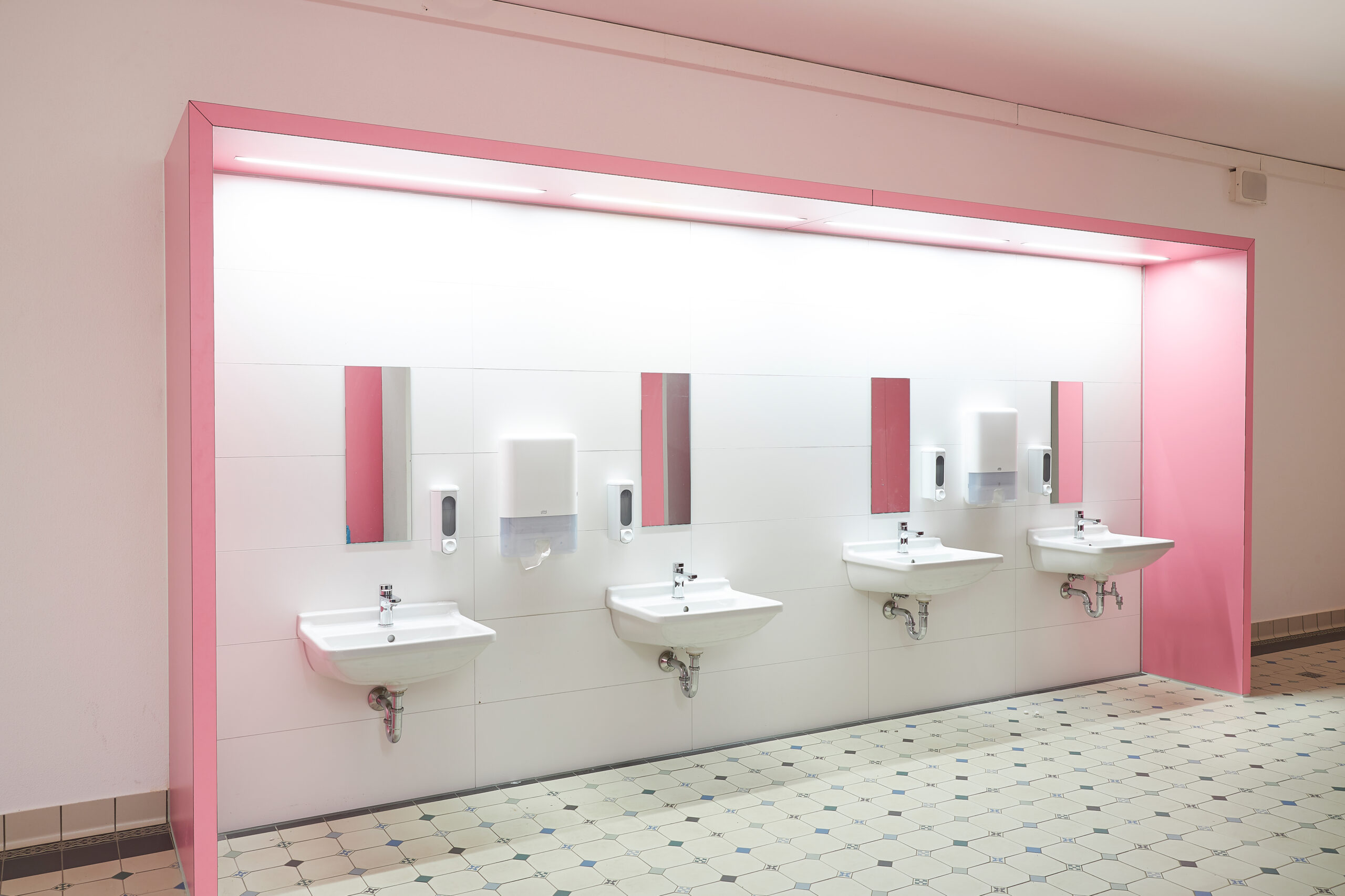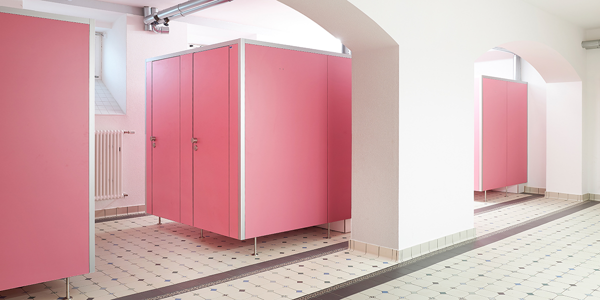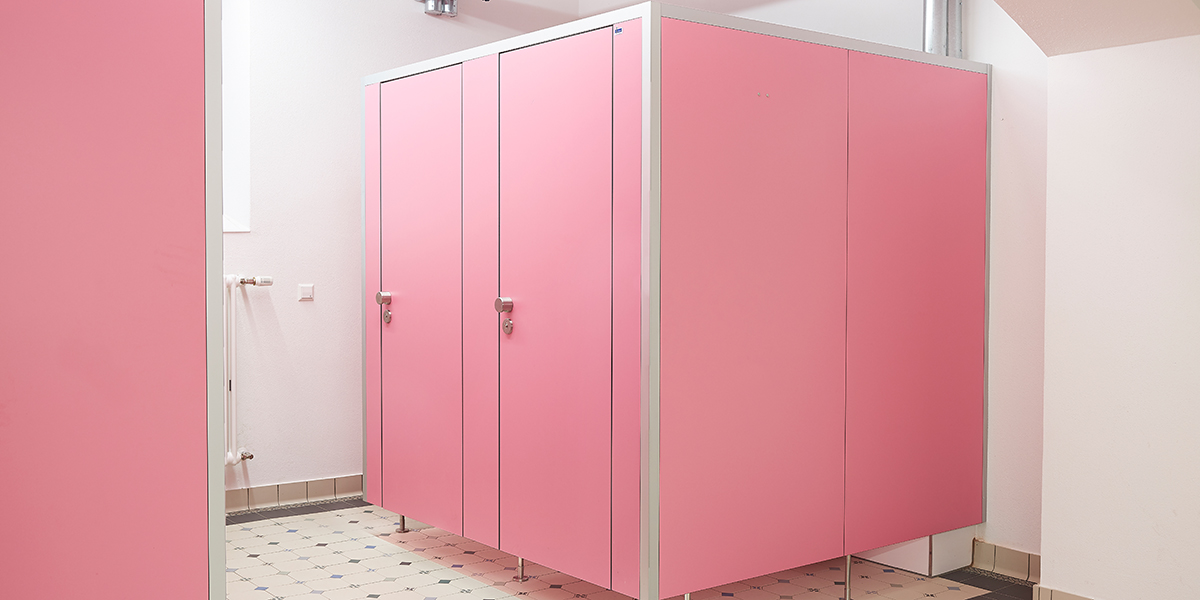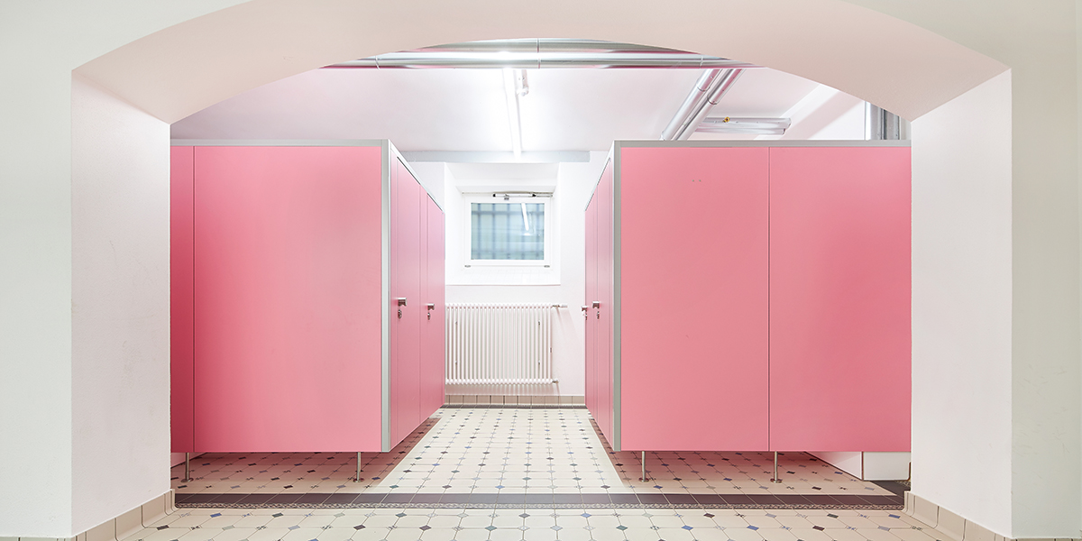 In der Jakobschule in Stuttgart sorgen die maßgefertigten WC-Trennwände von KEMMLIT für eine hochwertige und funktionale Ausstattung der Sanitärbereiche. Die Umsetzung in der Sonderfarbe Hortensie (U17014 VV, Fa. Pfleiderer) verleiht den Räumen eine freundliche, helle Atmosphäre und unterstützt ein angenehmes Raumgefühl für Schüler und Lehrkräfte gleichermaßen.