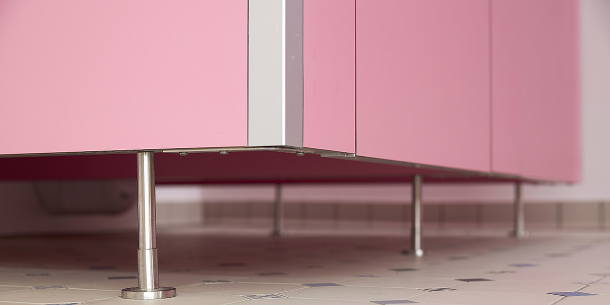 Die PRIMO Kn Trennwände bestehen aus stabilen HPL-Verbundelementen und werden durch Aluminiumprofile, Stabilisator sowie Edelstahl-Füße und Knopfgarnituren ergänzt. Diese Kombination garantiert maximale Stabilität, Langlebigkeit und hohe Hygieneanforderungen, die besonders in stark frequentierten Bereichen von Schulen erforderlich sind.
