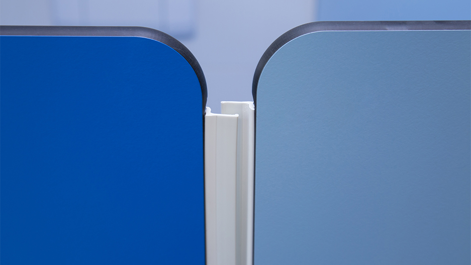 - WC-Trennwand B-Bambino Farbe der Wände in lagunblau 5408, Farbe der Türen in pazifikblau 5715