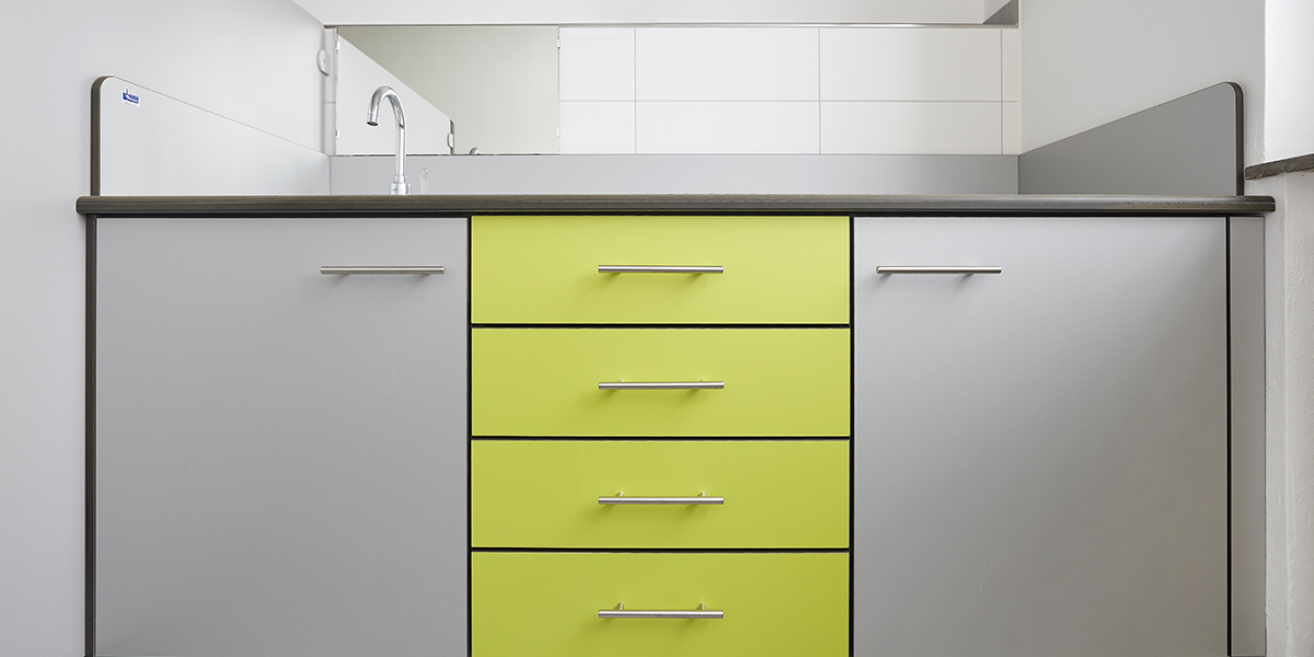 Im Kindergarten Kinderhaus Sandrain in Amstetten sorgen die WC-Trennwände und Wickelmöbel von KEMMLIT für eine sichere, funktionale und kindgerechte Sanitärausstattung. Die Trennwandsysteme B-Bambino Klassik wurden sowohl für Kinder- als auch für Erwachsenenkabinen eingesetzt und zeichnen sich durch ihre robuste Konstruktion aus 13 mm HPL aus. Die farbliche Gestaltung in Silber 7408 und Limonengrün 6715 schafft eine freundliche und einladende Atmosphäre.