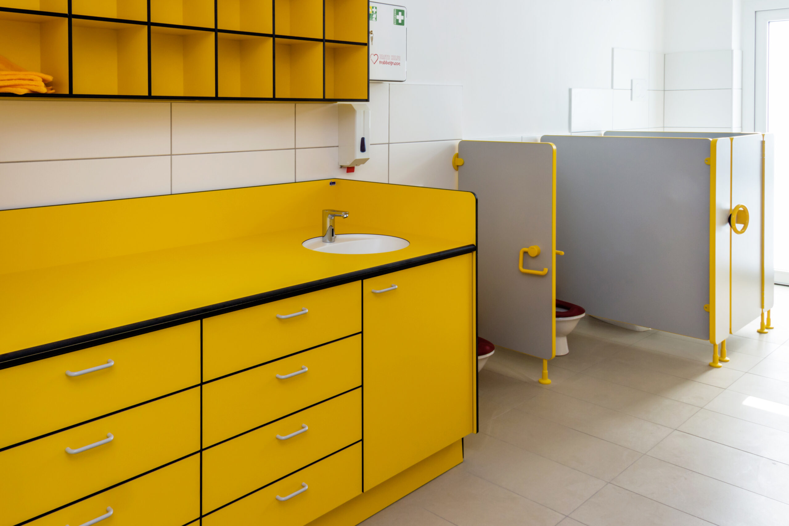 Dieses Projekt verdeutlicht, wie durchdachte Kita-Sanitärlösungen, hochwertige Materialien und kindgerechtes Design eine sichere und angenehme Umgebung für die Kleinsten schaffen. KEMMLIT setzt damit erneut Maßstäbe in der Ausstattung von Kindertagesstätten.