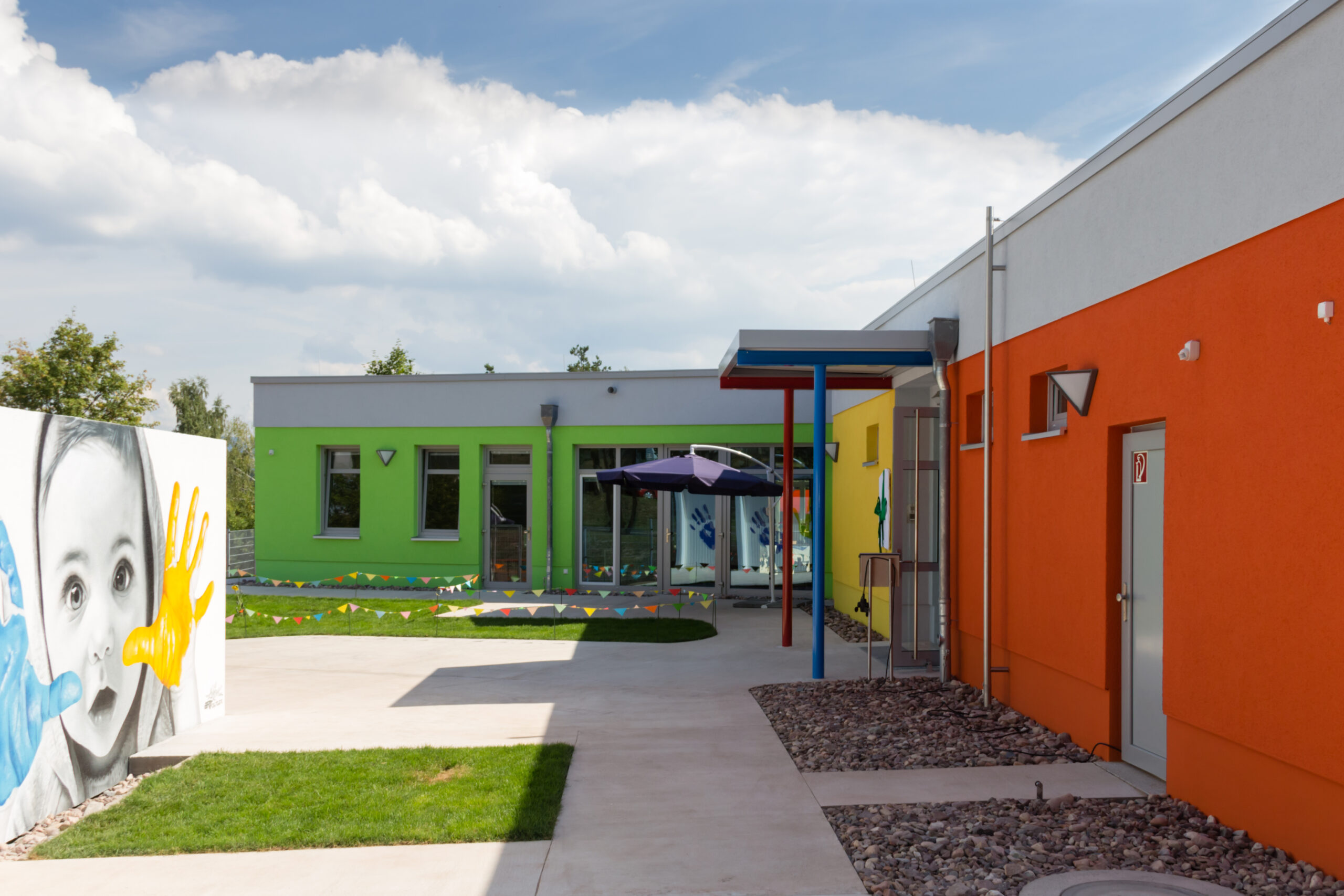Der Neubau der Kindertagesstätte Regenbogenland in Bad Salzungen ist ein architektonisches Highlight und wurde bei der Eröffnung im August 2013 von Kindern, Eltern und Erziehern gleichermaßen feierlich begrüßt.