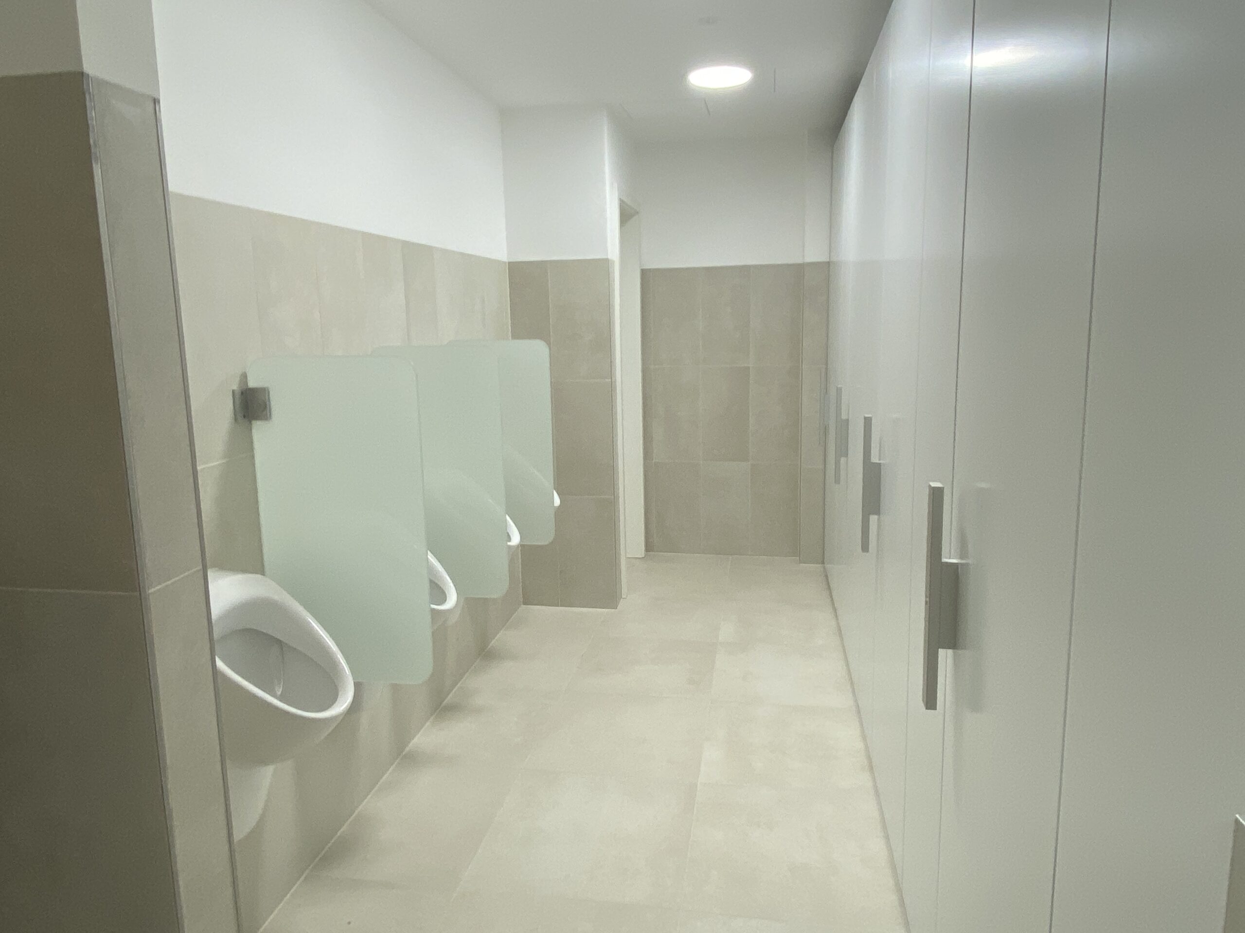 Ergänzt wird die Anlage durch Urinaltrennwände, die den Sanitärbereich funktional erweitern und für zusätzliche Privatsphäre sorgen.
