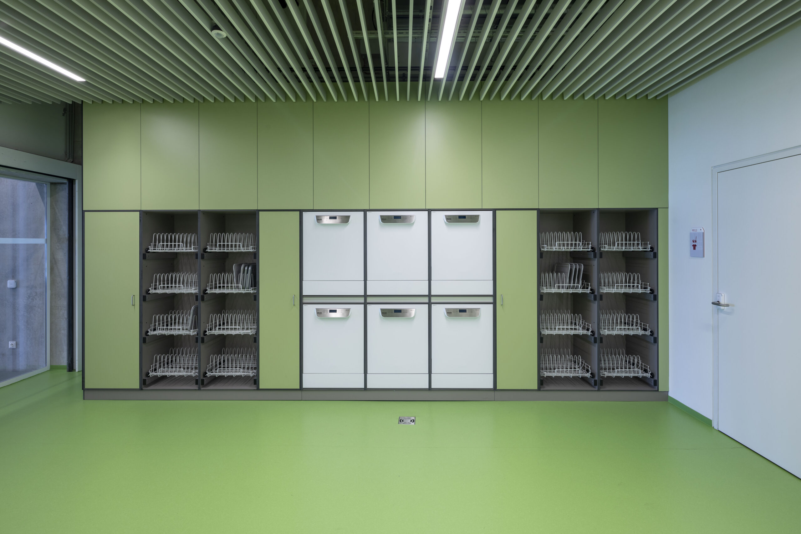 Durch maßgefertigte Möbelsysteme, optimal strukturierte Garderoben- und Umkleidebereiche sowie integrierte Funktionsmodule entsteht ein klar gestalteter, effizienter Arbeitsbereich. Farblich abgestimmte Fronten, robuste Materialien und präzise Verarbeitung gewährleisten Langlebigkeit und einfache Reinigung, ideal für den anspruchsvollen täglichen Einsatz.