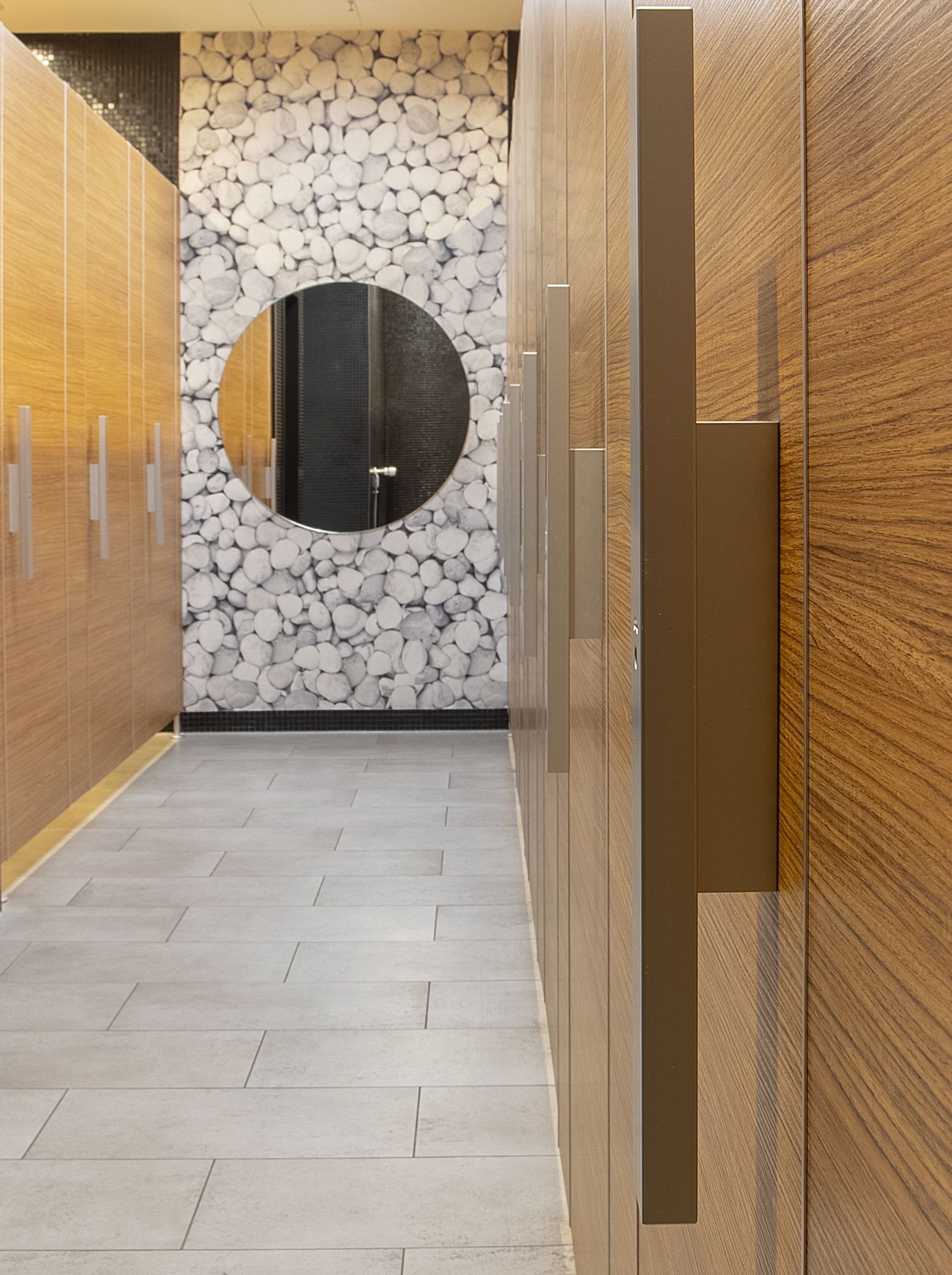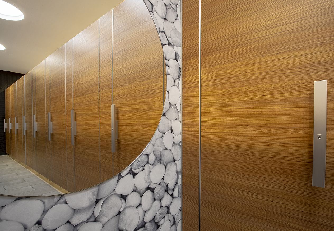 Im modernen pep Einkaufscenter in München wurde das WC-Trennwandsystem NiUU F in einem eleganten Sonderholz-Dekor Pfleiderer R 30025 RU installiert. Diese Anlage überzeugt durch ihre warme, natürliche Holzoptik und die hochwertige Verarbeitung, die perfekt zum anspruchsvollen Design des Einkaufszentrums passt.