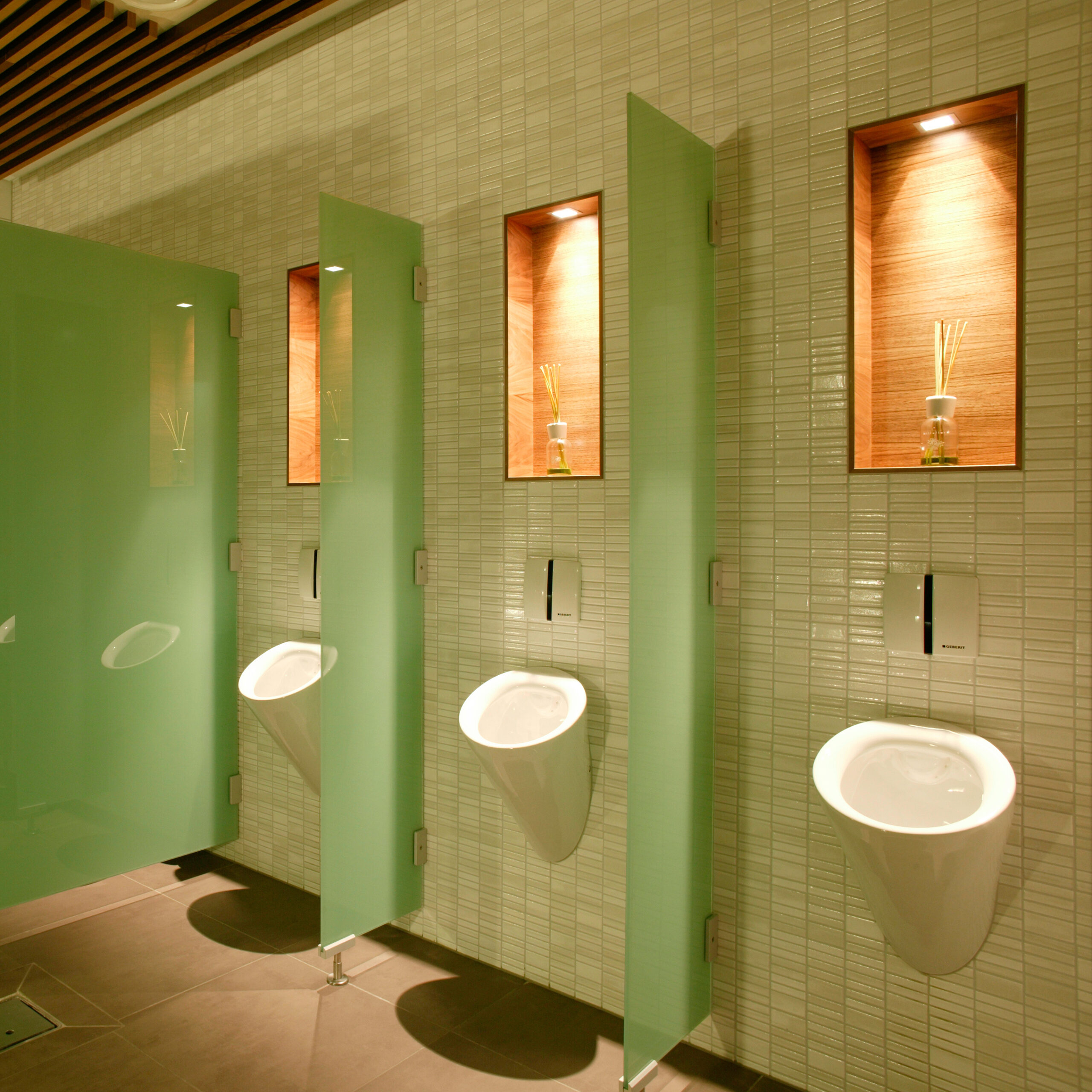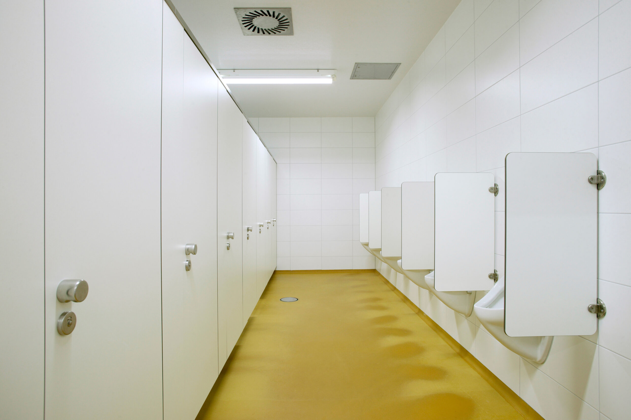 Zusätzlich wurde das WC-Trennwandsystem NOXX Glas in weißgrün installiert, inklusive passender Schamwände. Mit seiner modernen Glasoptik, den stabilen Aluminiumprofilen und der eleganten Farbgebung bringt NOXX Glas einen zeitgemäßen Look in die Sanitärbereiche und sorgt gleichzeitig für hohe Funktionalität und einfache Pflege.