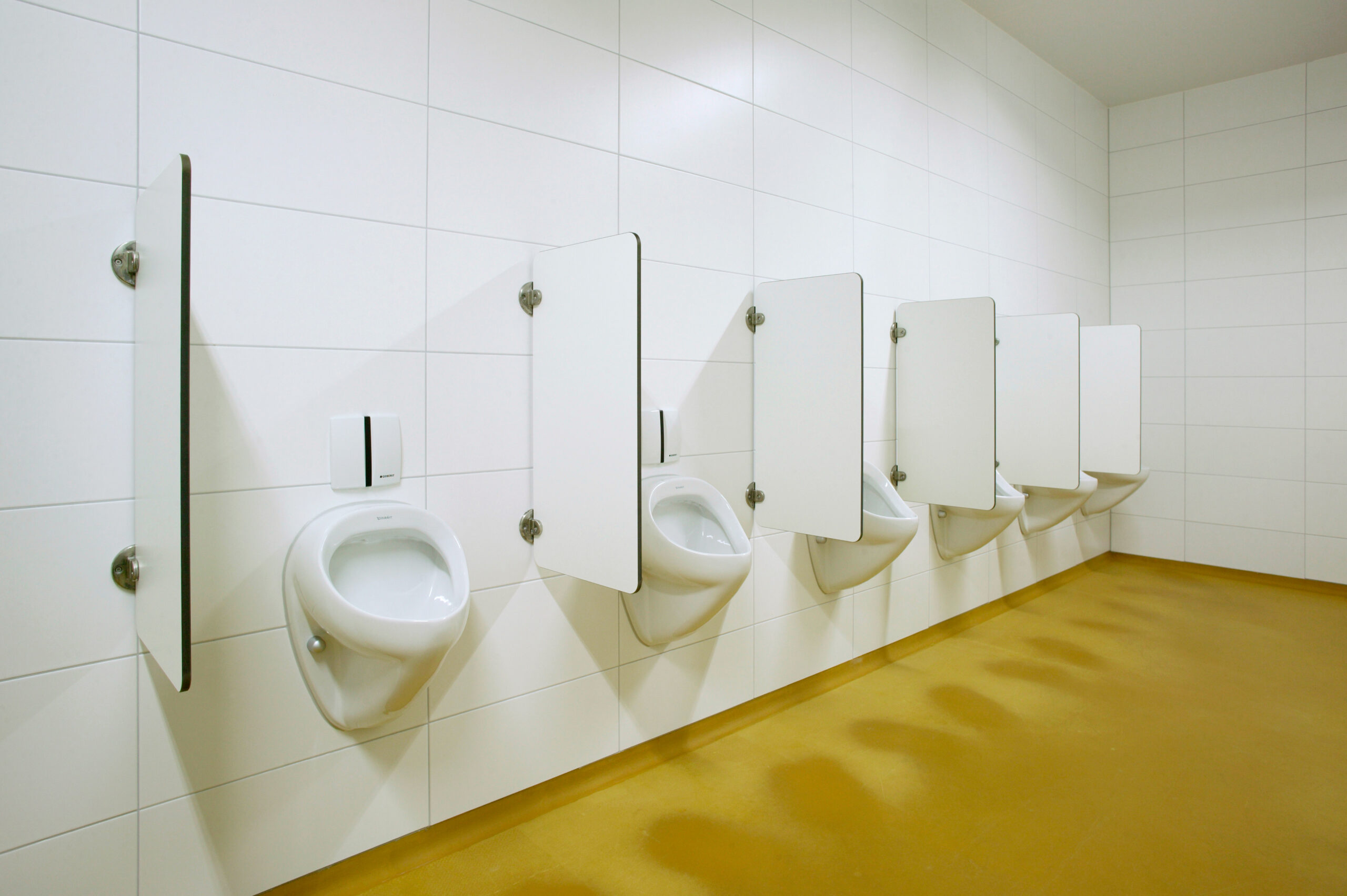 - Schamwände aus 13 mm HPL, Farbe: kristallweiß