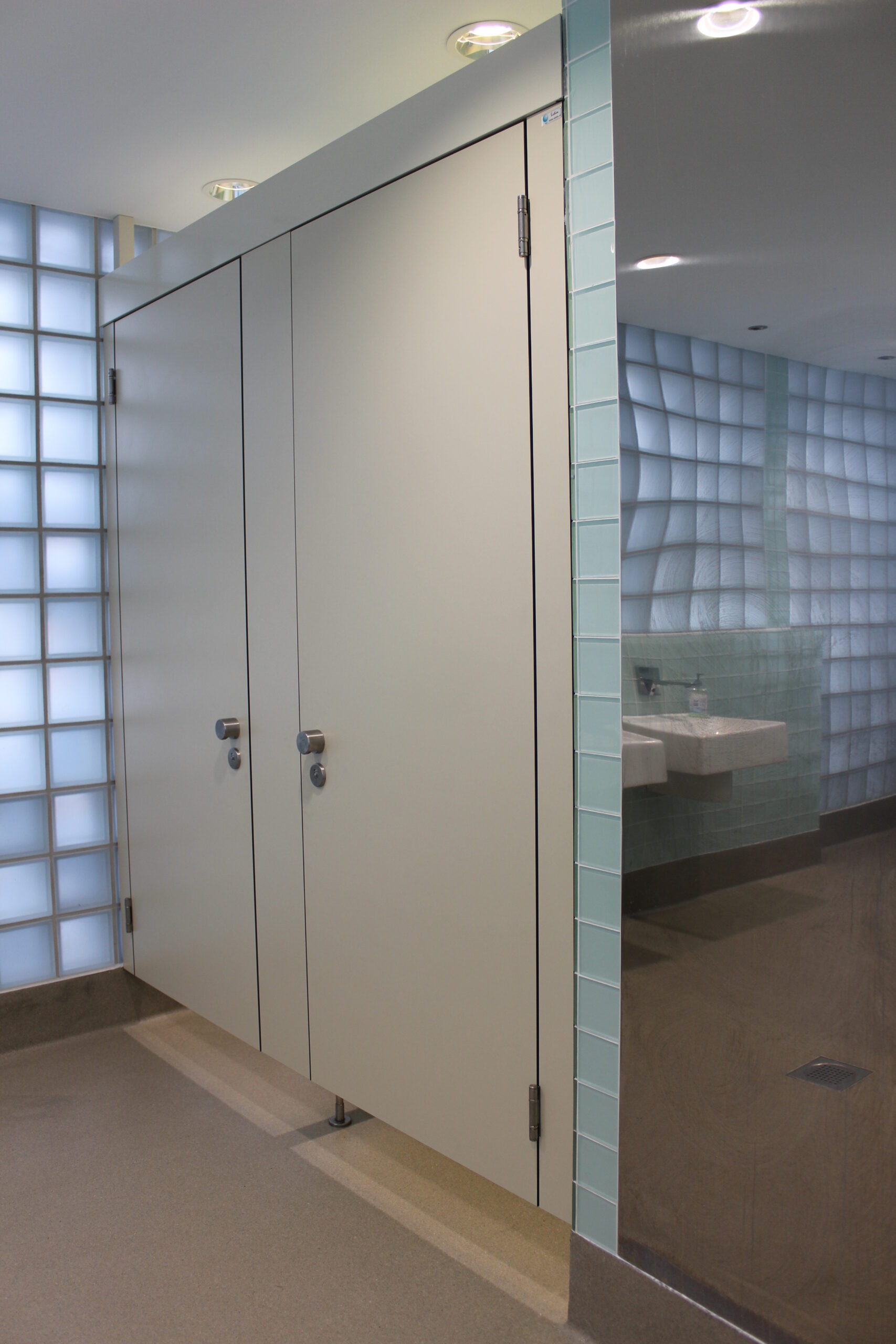Die 30 mm starken PRIMO F Trennwände mit ihrer glattflächigen Oberfläche bieten die nötige Stabilität und sind extrem reinigungsfreundlich. Durch die Kombination beider Systeme entstand eine hochfunktionale und langlebige Sanitäreinrichtung.