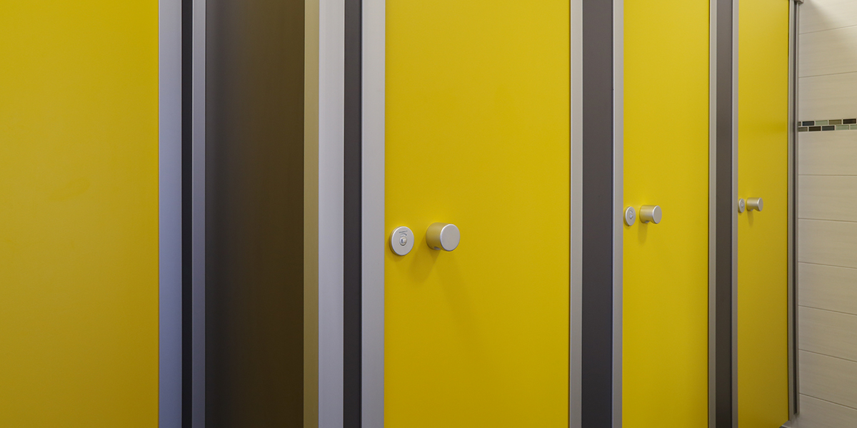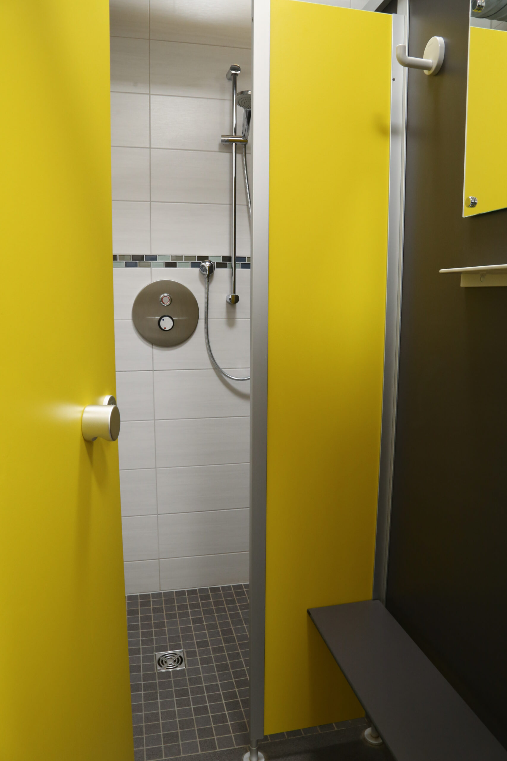 Für den beliebten Campingplatz in Albstadt lieferte KEMMLIT maßgeschneiderte Lösungen für Sanitärräume: Das WC-Trennwandsystem sowie die Dusch- und Umkleidekabinen cronus wurden in standoptimierter Ausführung installiert, bei der die Füße dezent in den Zwischenwänden integriert sind. Die Wände erstrahlen in elegantem Graphit 7808, während die Türen in lebendigem Maisgelb 1708 einen freundlichen Akzent setzen.