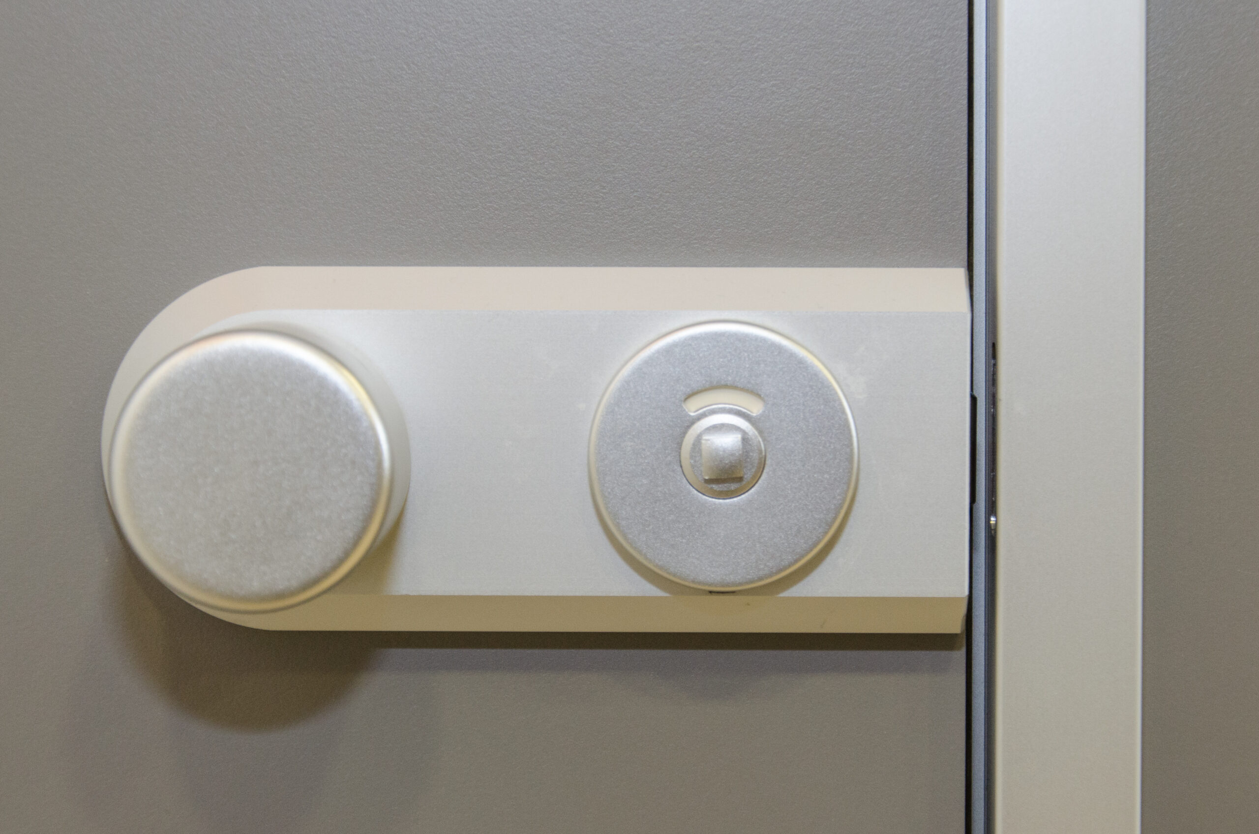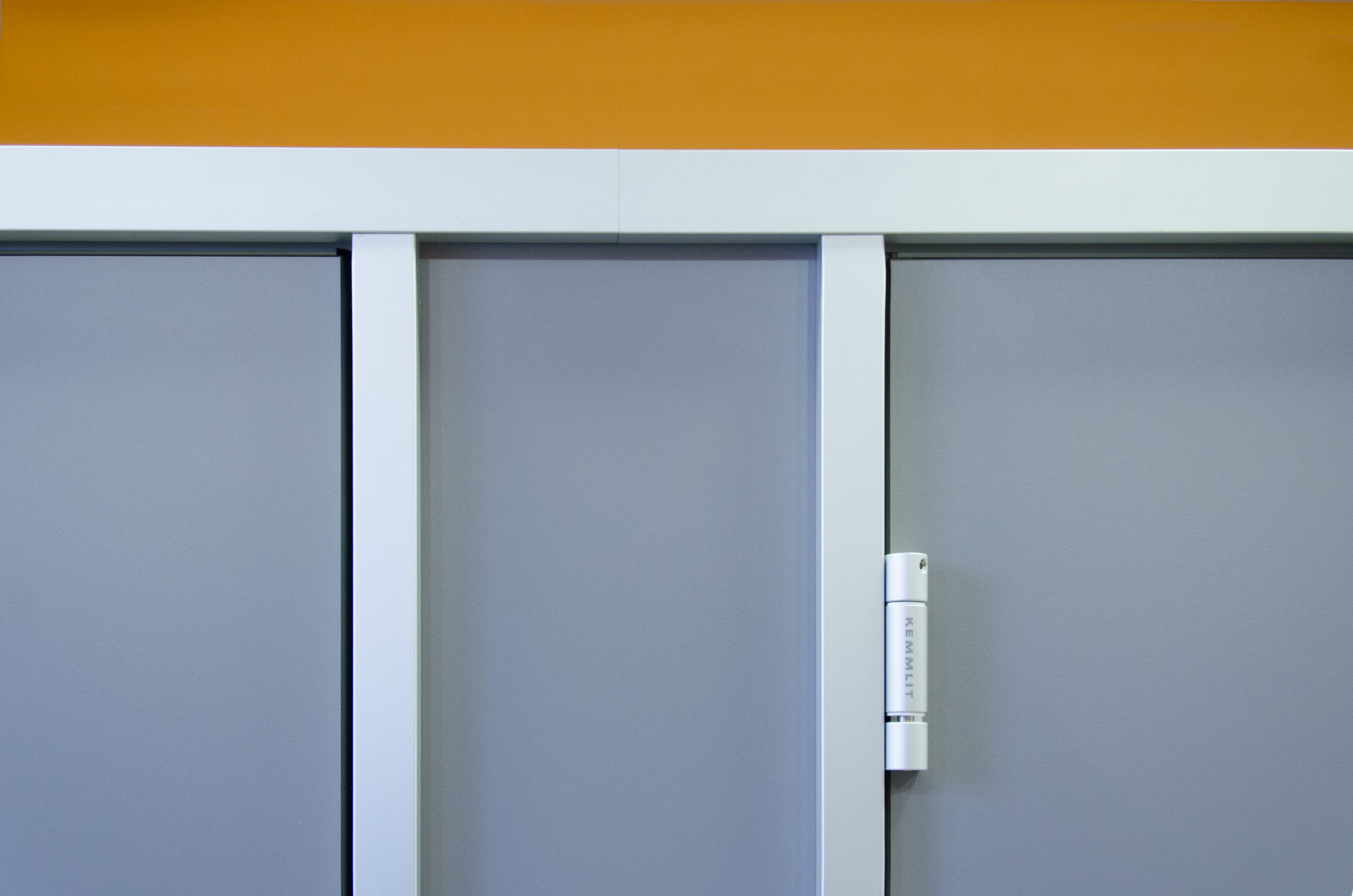 - WC-Trennwandsystemcronus Wände und Türe in quarzgrau Bänder, Füße, Garnituren und Profile aus eloxiertem Aluminium