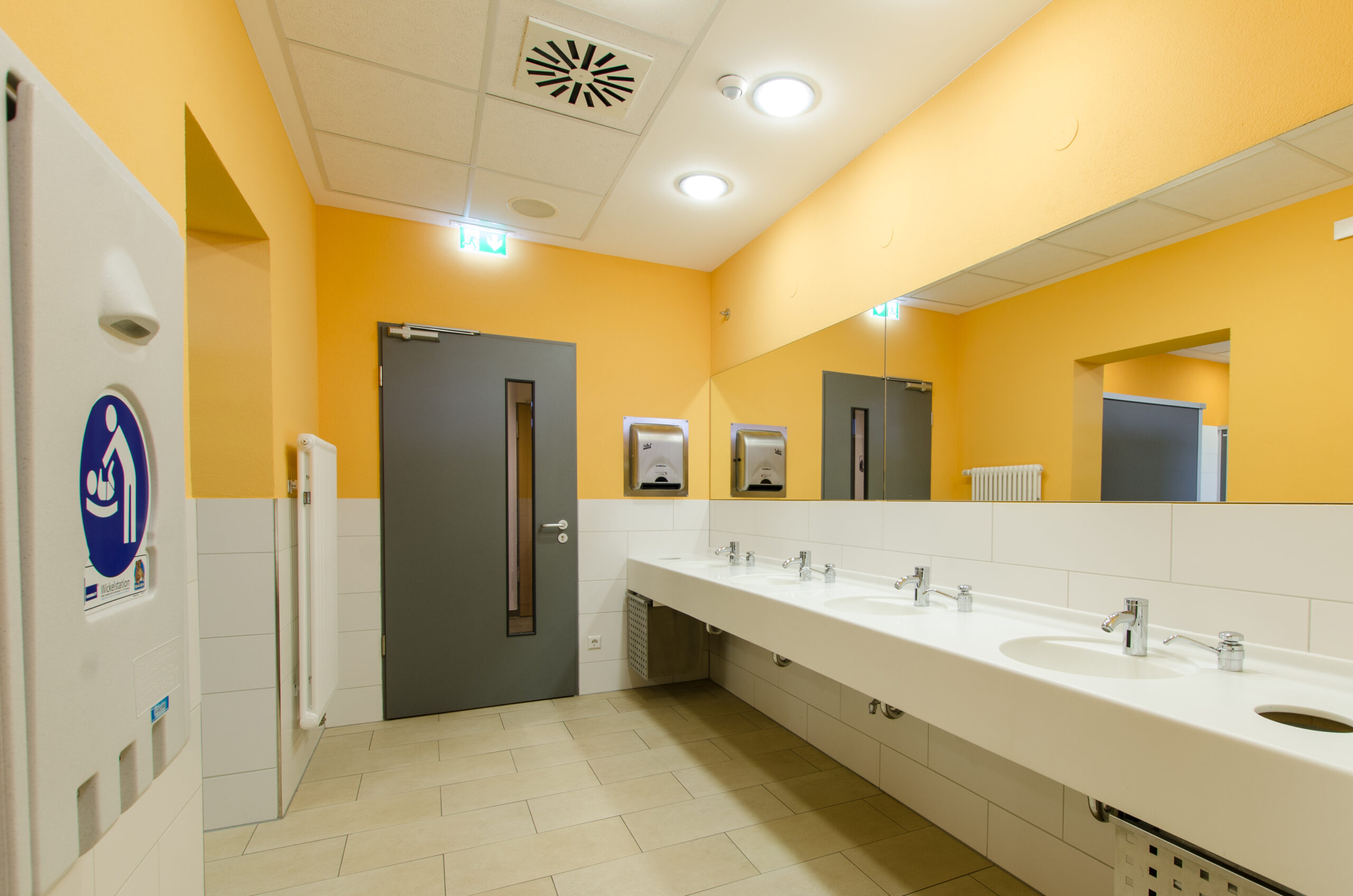 Die Stadthalle Bräunlingen ist ein zentraler Ort für Kultur und Begegnung. Um den hohen Anforderungen eines stark frequentierten Veranstaltungsbetriebs gerecht zu werden, wurden die Sanitärräume mit dem WC-Trennwandsystem cronus von KEMMLIT ausgestattet.
