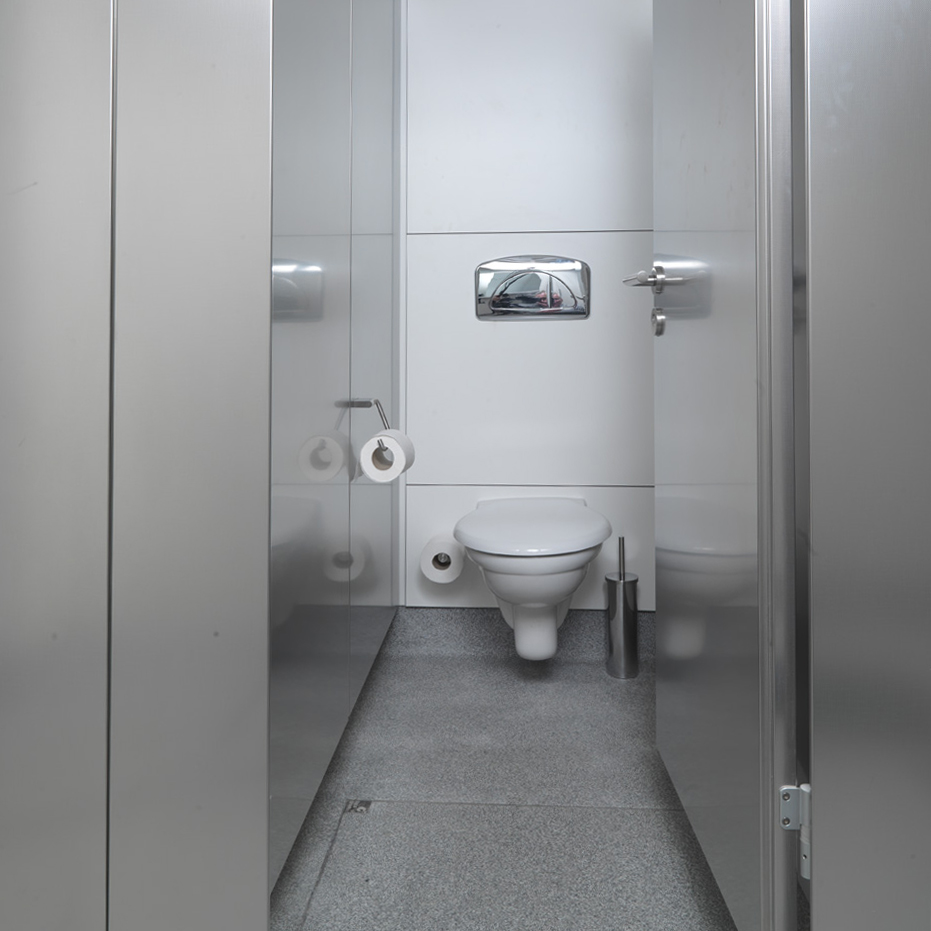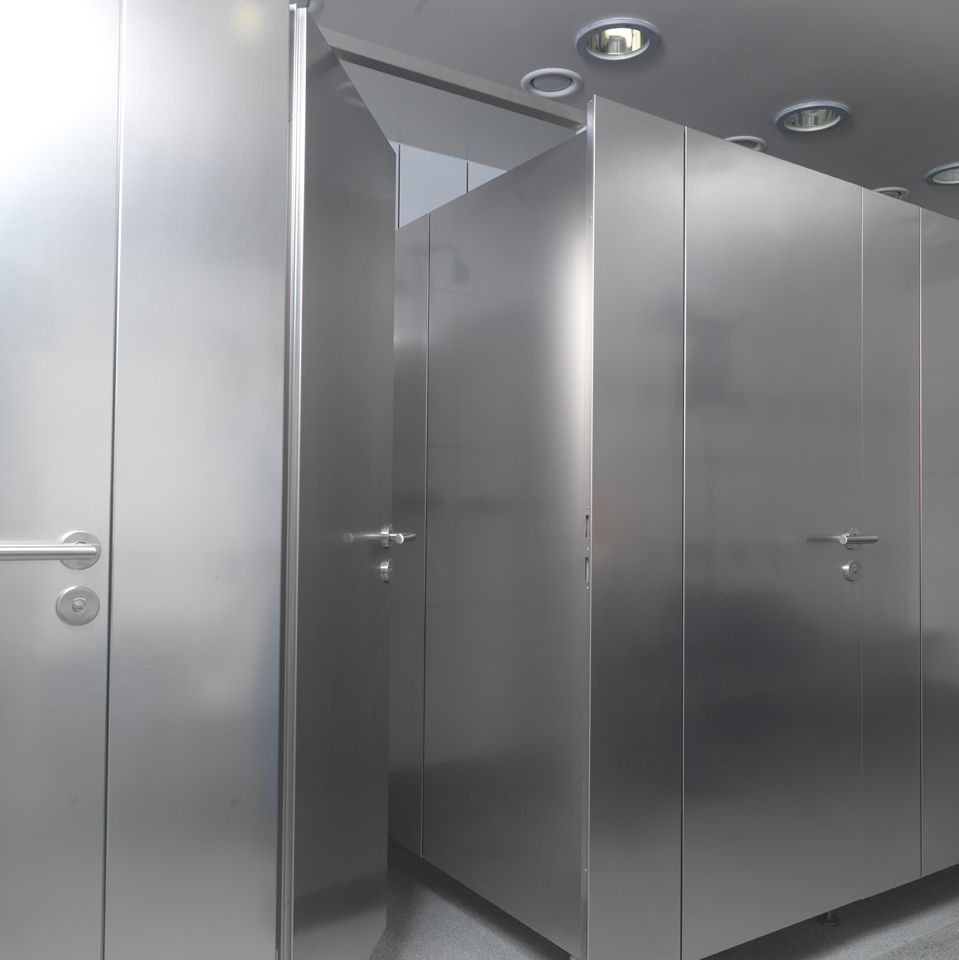 Im Starsgym in London wurde der Sanitär- und Umkleidebereich mit hochwertigen KEMMLIT-Systemen ausgestattet. Das WC-Trennwandsystem classiccell sorgt durch seine 42 mm starke Metallkonstruktion, die glattflächige Ausführung und die antibakterielle Oberfläche für ein zeitloses, hygienisches und robustes Design, das sich ideal für Nassräume eignet. Fast raumhohe Türen und Zwischenwände bieten hohe Privatsphäre, Schallschutz und optimale Be- und Entlüftung.