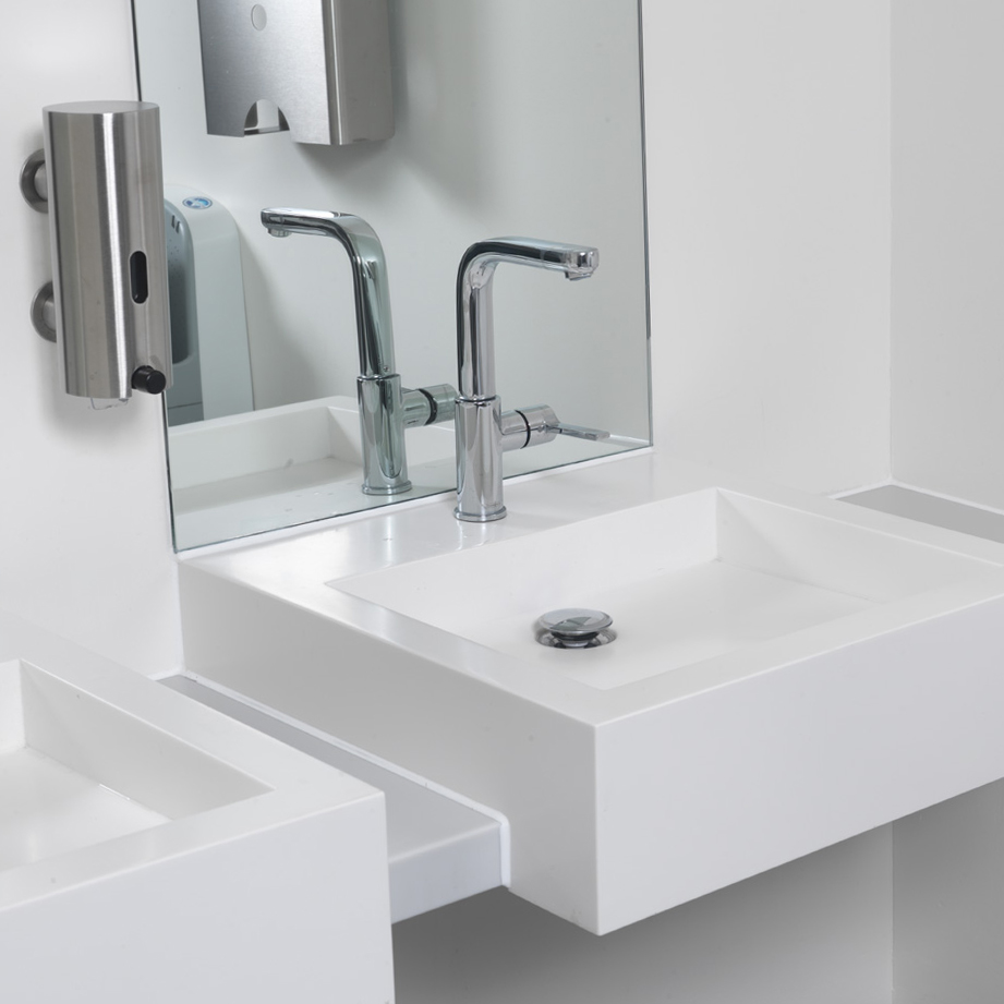 Für die Umkleiden wurde das Schranksystem TYPO R aus umweltfreundlichem, meerwasserbeständigem Aluminium installiert. Die flexiblen Türlösungen aus Aluminium, HPL oder Glas, die kratzfeste Crystal-Coat-Oberfläche sowie branchenspezifische Ausstattungselemente garantieren Langlebigkeit und individuelle Anpassbarkeit. Abgerundet wird die Einrichtung durch Sitzbänke Typ U, Waschplätze NOVIS und HPL-Wandverkleidungen, die den Bereich funktional, komfortabel und optisch modern gestalten.