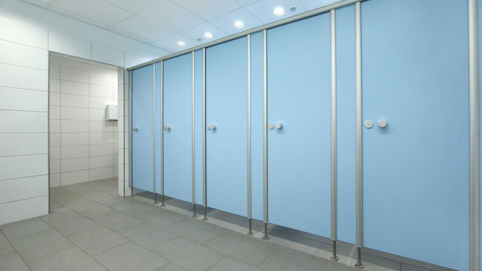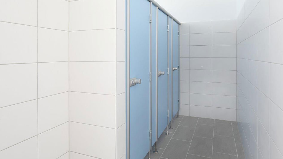 Im Zuge der Sanierung der Sanitäranlagen der Steinäckerschule in Bodelshausen wurde das bewährte WC-Trennwandsystem BASIC Typ C von KEMMLIT eingesetzt. Die Ausführung in einem freundlichen Lagunblau sorgt für eine frische und moderne Atmosphäre.