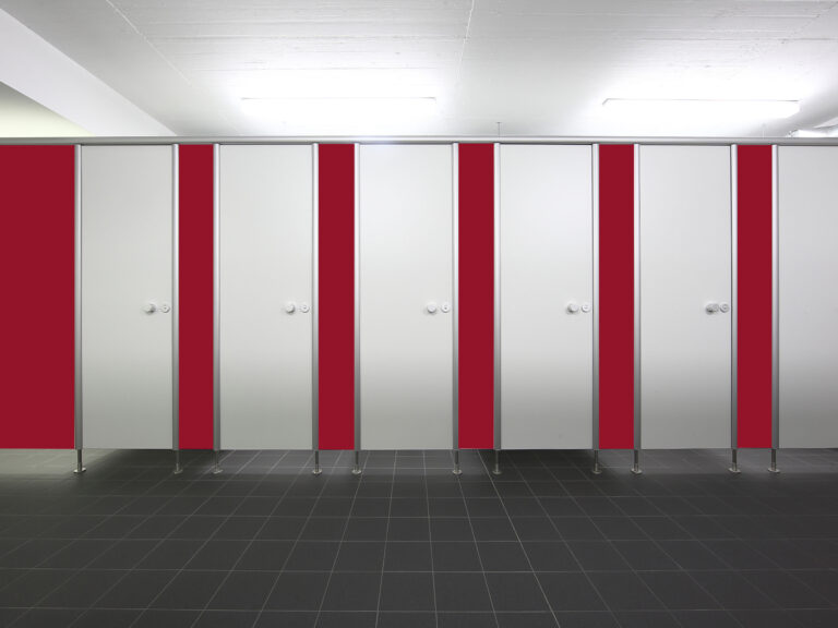 Das System BASIC Typ C ist optimal für hochfrequentierte Bereiche wie Schulen geeignet. Die Trennwände bestehen aus robusten 13 mm starken, wasserresistenten HPL-Vollkernplatten (High Pressure Laminate). Diese Materialwahl garantiert höchste Stabilität und ist kratz-, verschleiß- und abriebfest – essenzielle Eigenschaften, um den täglichen Beanspruchungen im Schulalltag standzuhalten.