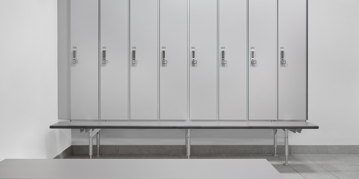 In der Berliner Yachtclub-Anlage hat KEMMLIT die Garderobenbereiche modern und funktional ausgestattet. Installiert wurden Garderobenspinde und Wertfächer vom Typ TYPO S mit Schranktüren aus robustem HPL und elektronischem PIN-Schloss. Ergänzt werden die Schränke durch eine vorgebaute Sitzbank sowie einen freistehenden Sitzwürfel in U-Form, die komfortables Umkleiden ermöglichen.
