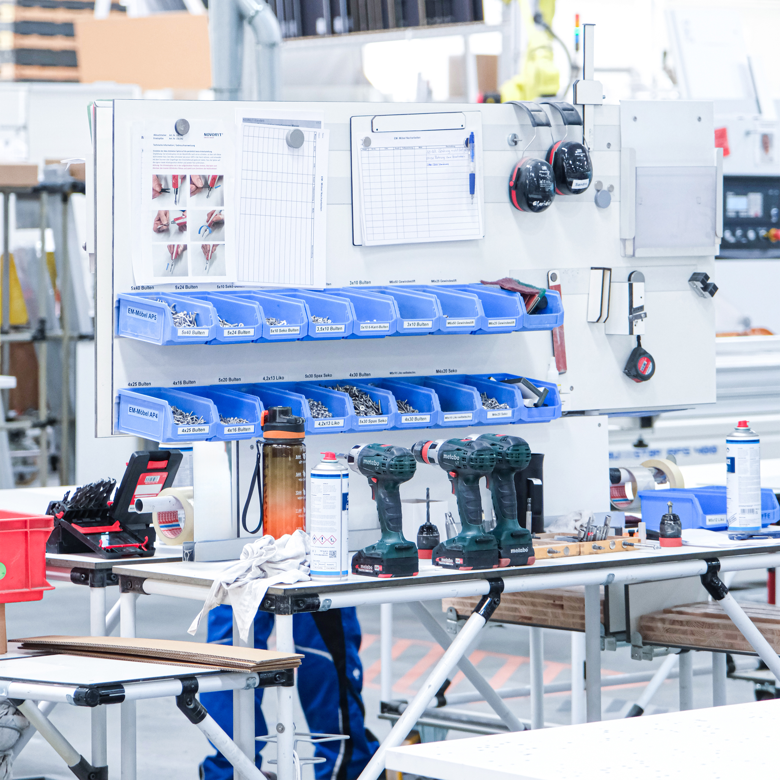 Damit wir unsere Ziele erreichen, schaffen wir für unsere Mitarbeiter optimale Arbeitsbedingungen – jederzeit und ohne Hindernisse. Dafür haben wir ein eigenes System zur Arbeitsvorbereitung entwickelt. Arbeitsplätze werden kontinuierlich optimiert, Werkzeuge und Materialien sind stets verfügbar und einsatzbereit.
